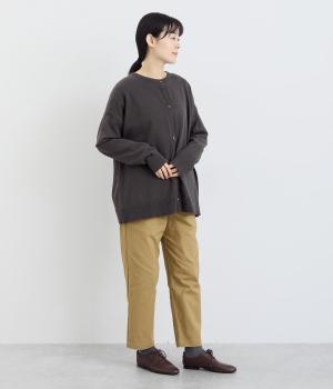 しっかりとした編み目が特徴的なコットン素材。なめらかな肌触りで心地よく着用できます。伸縮性があり、ゆったりとしたサイジングで脱ぎ着も簡単です。