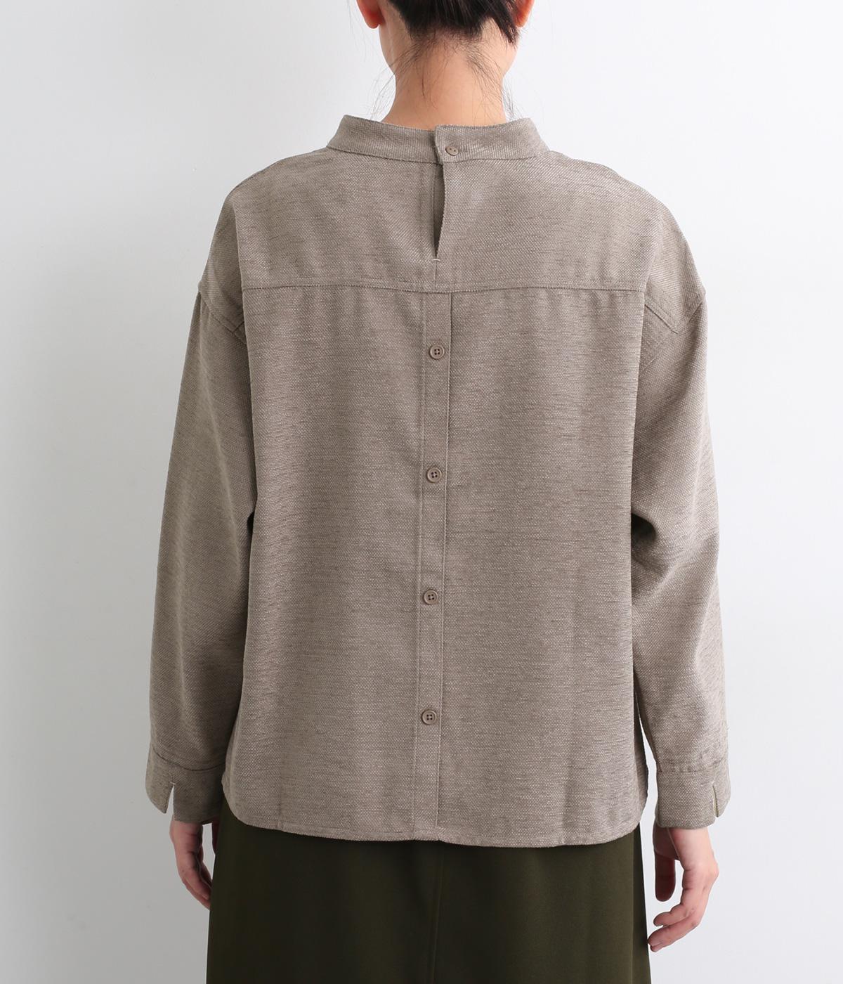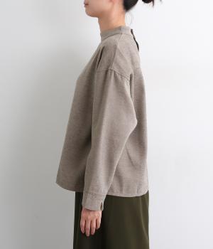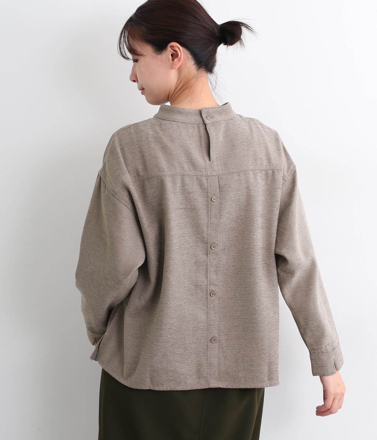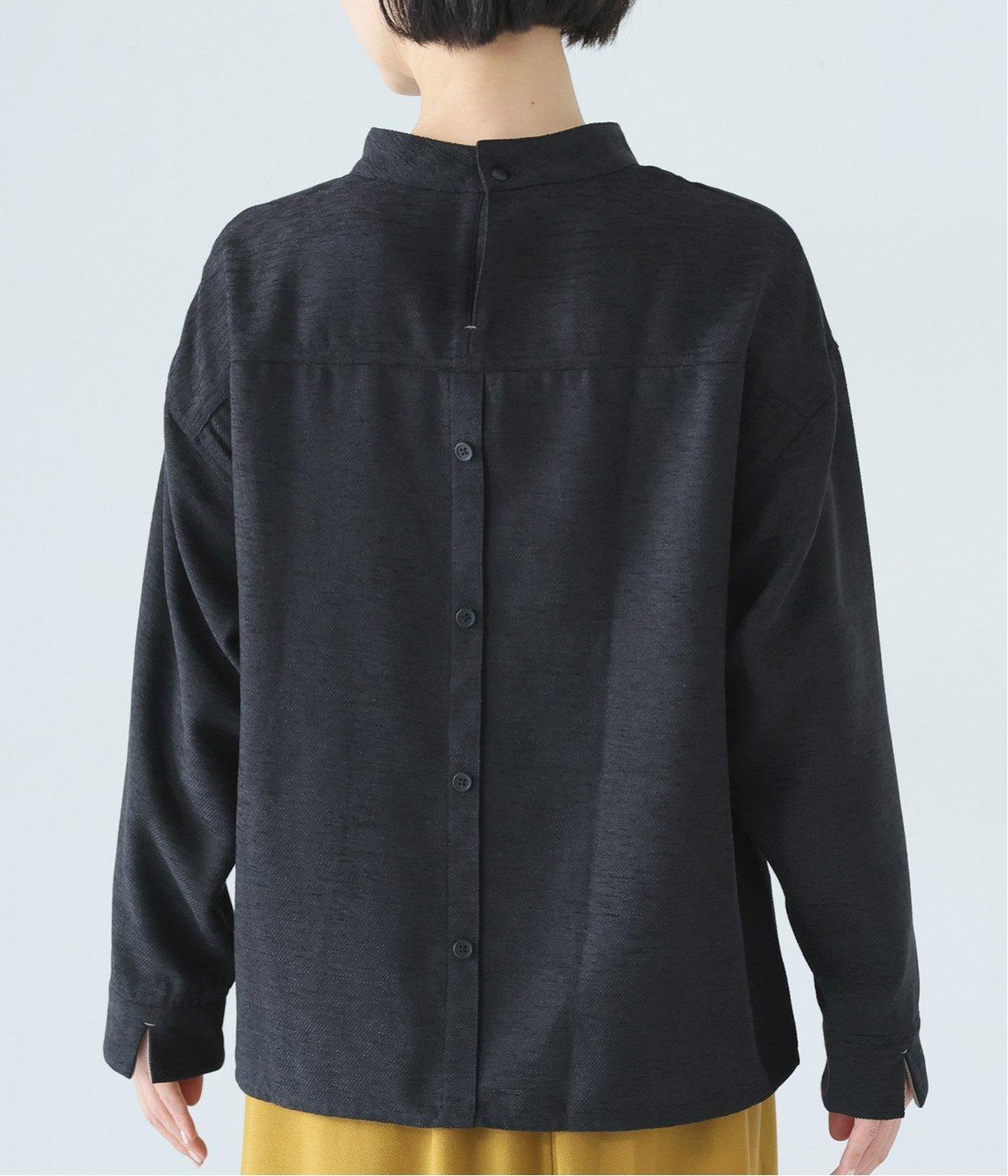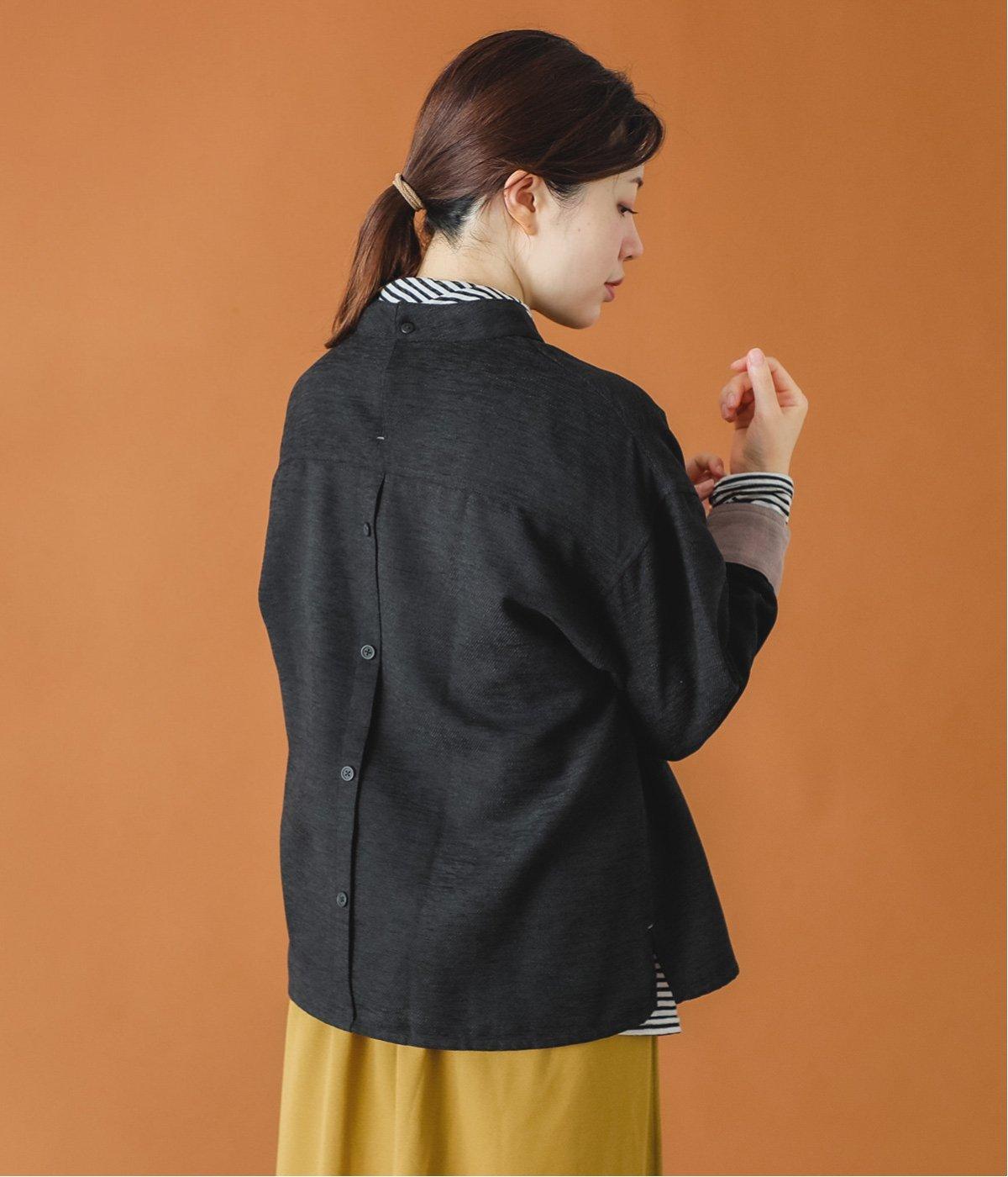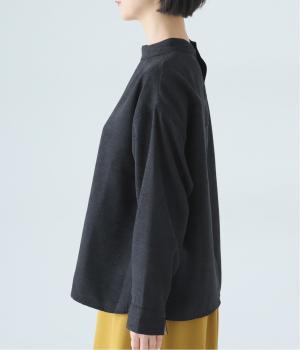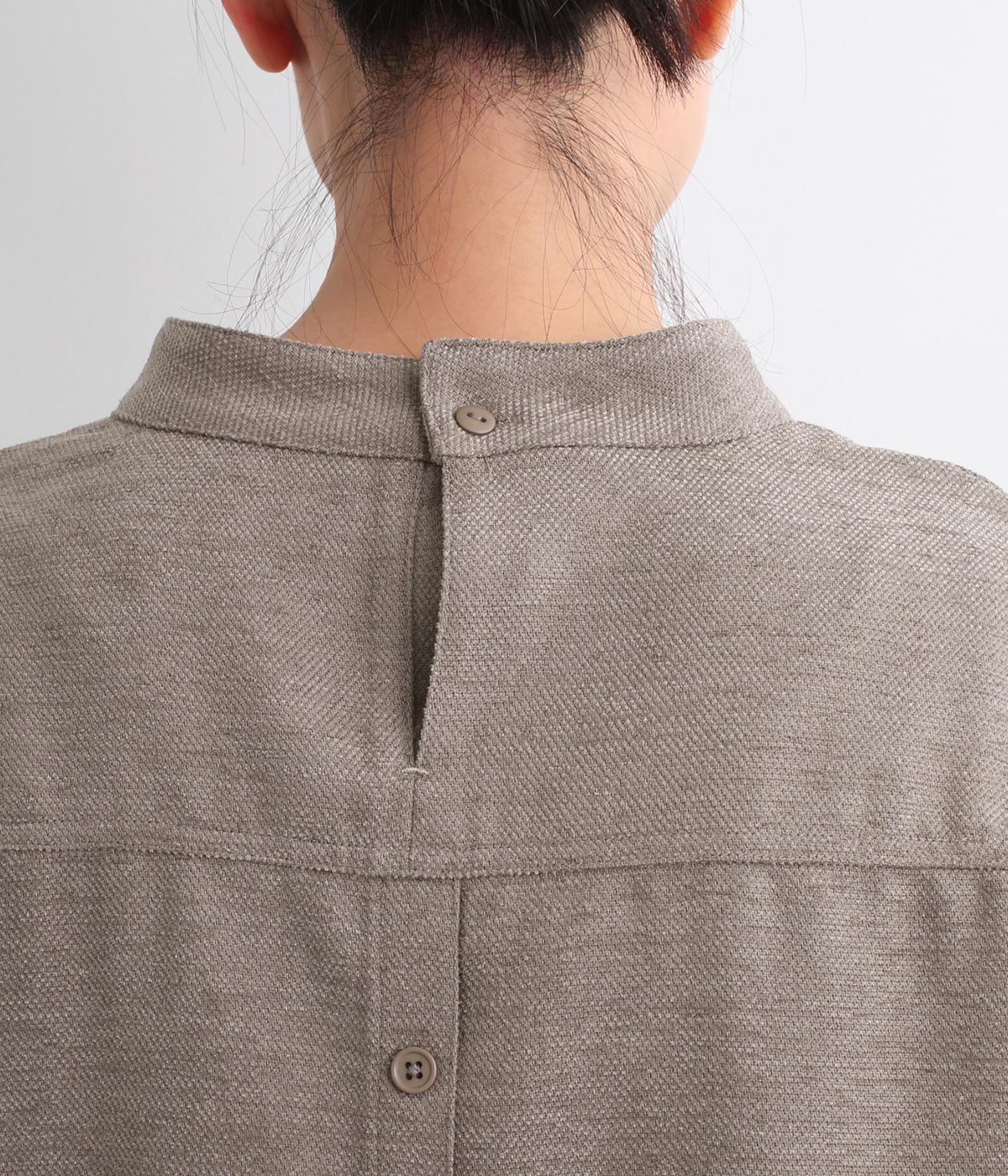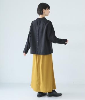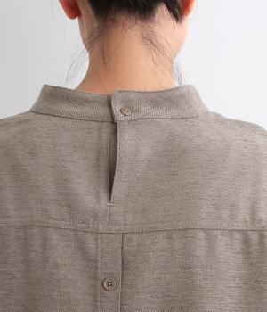低めに立ち上げたスタンドカラーが上品なムードを運ぶブラウス。身幅とアームホールをゆったりと仕上げ、ラフな着心地にこだわりました。ネック後ろはボタン開き仕様。その下にもボタンを飾って後ろ姿のアクセントにしています。スリットを入れた袖口は折り返しても素敵です。