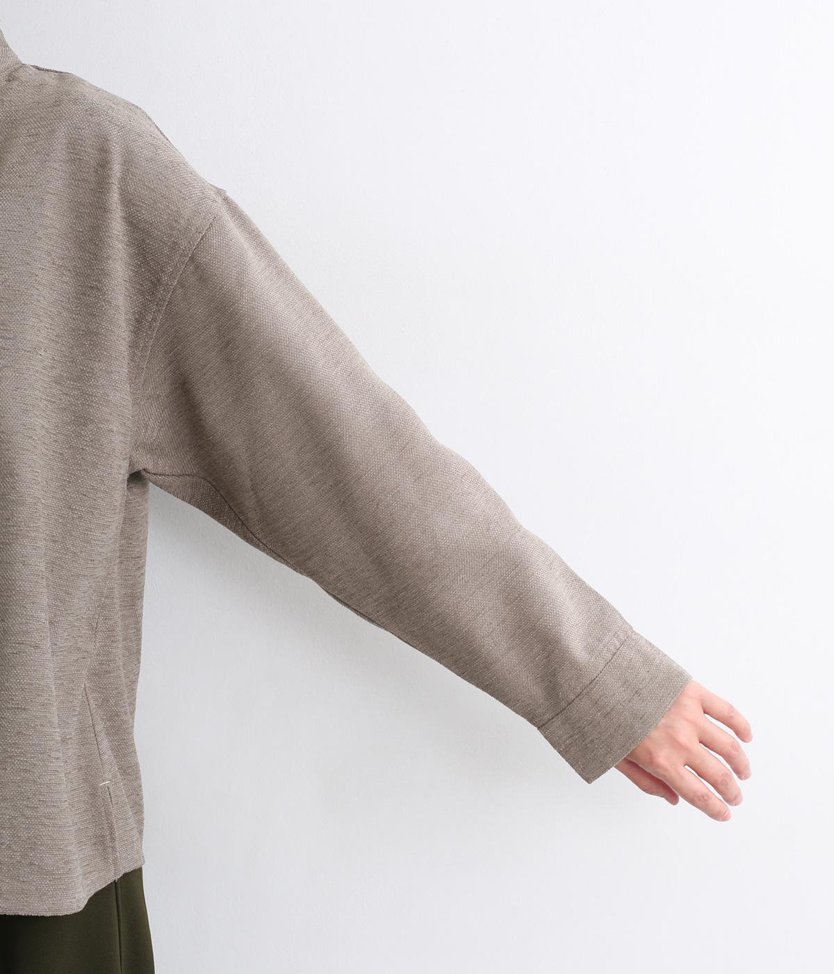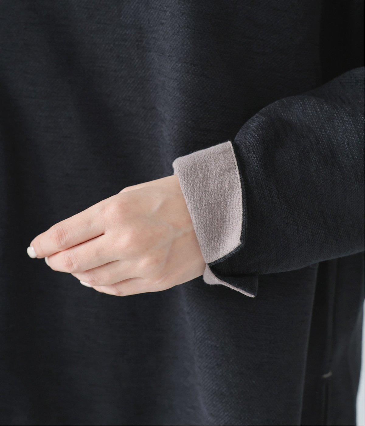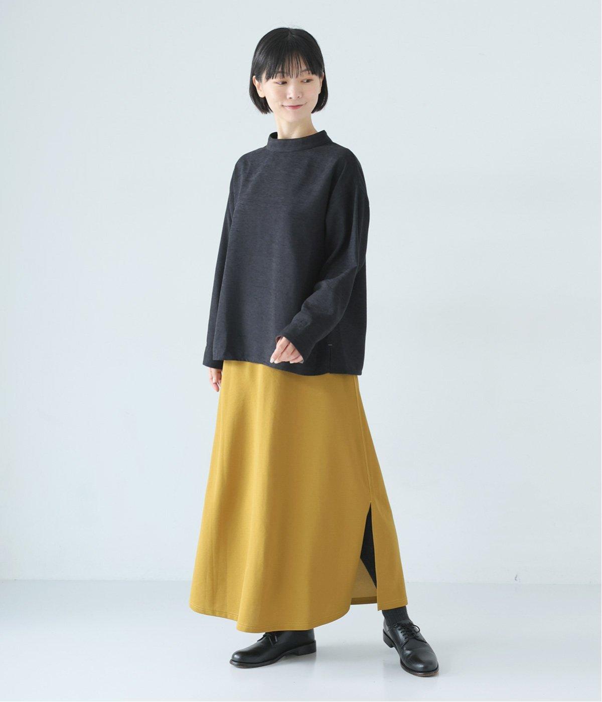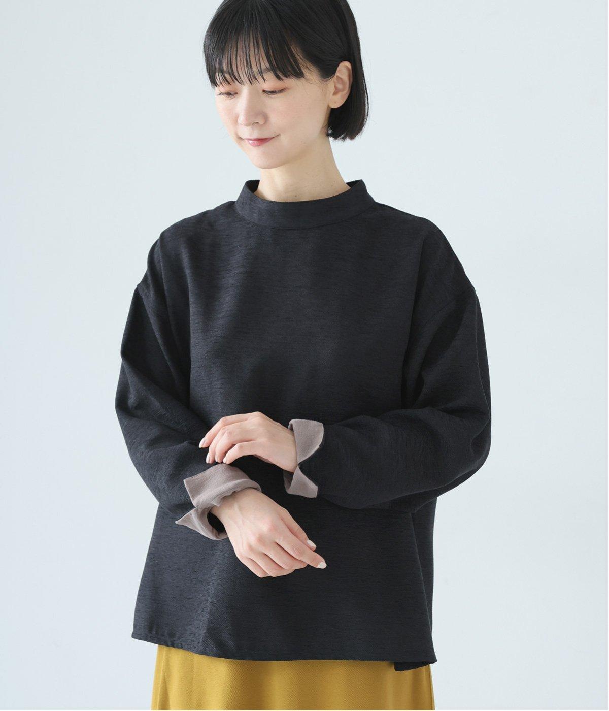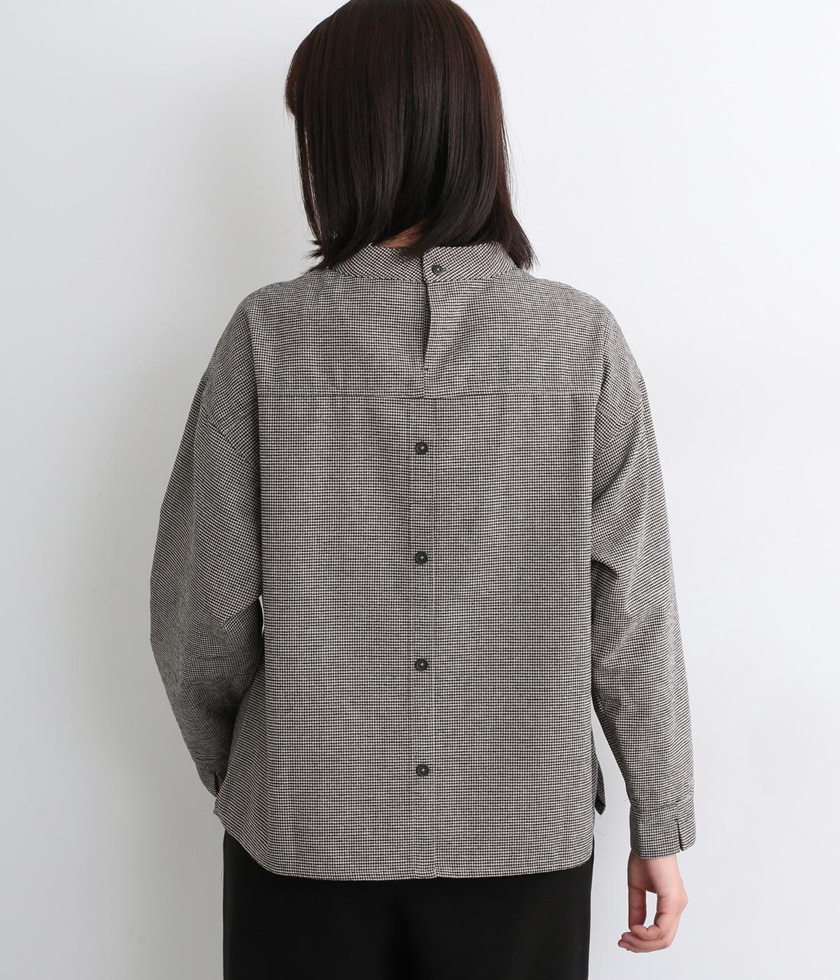 低めに立ち上げたスタンドカラーが上品なムードを運ぶブラウス。身幅とアームホールをゆったりと仕上げ、ラフな着心地にこだわりました。ネック後ろはボタン開き仕様。その下にもボタンを飾って後ろ姿のアクセントにしています。スリットを入れた袖口は折り返しても素敵です。