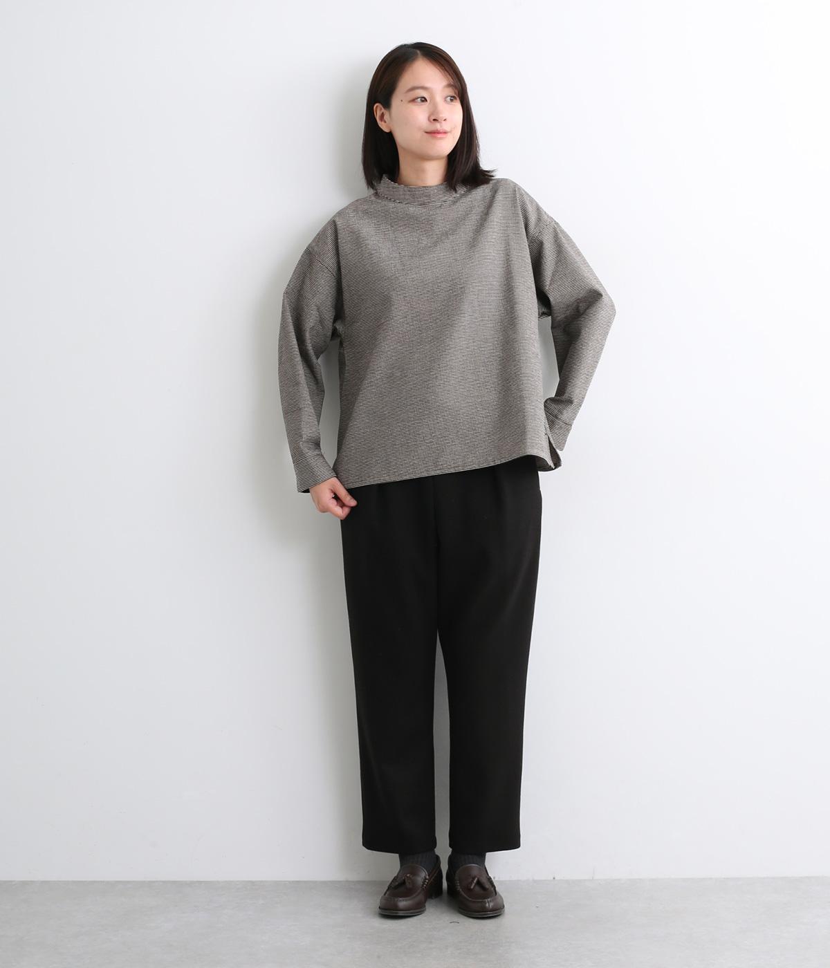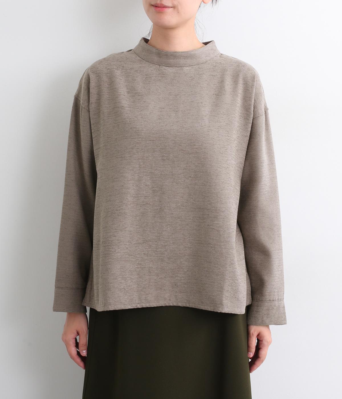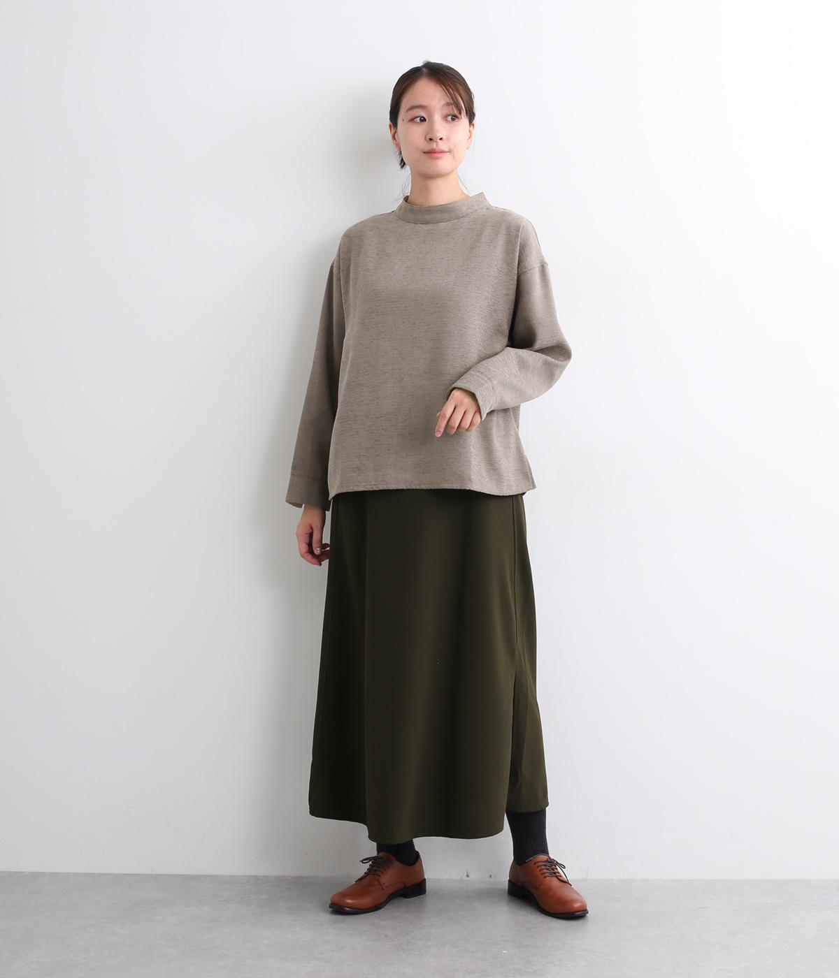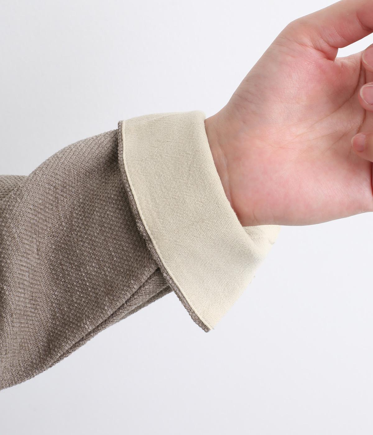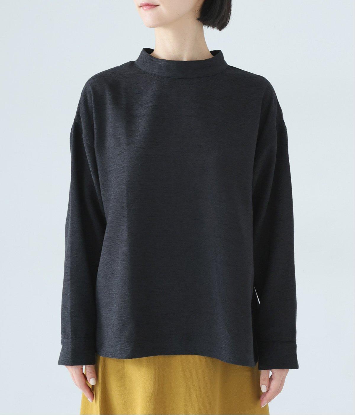 低めに立ち上げたスタンドカラーが上品なムードを運ぶブラウス。身幅とアームホールをゆったりと仕上げ、ラフな着心地にこだわりました。ネック後ろはボタン開き仕様。その下にもボタンを飾って後ろ姿のアクセントにしています。スリットを入れた袖口は折り返しても素敵です。