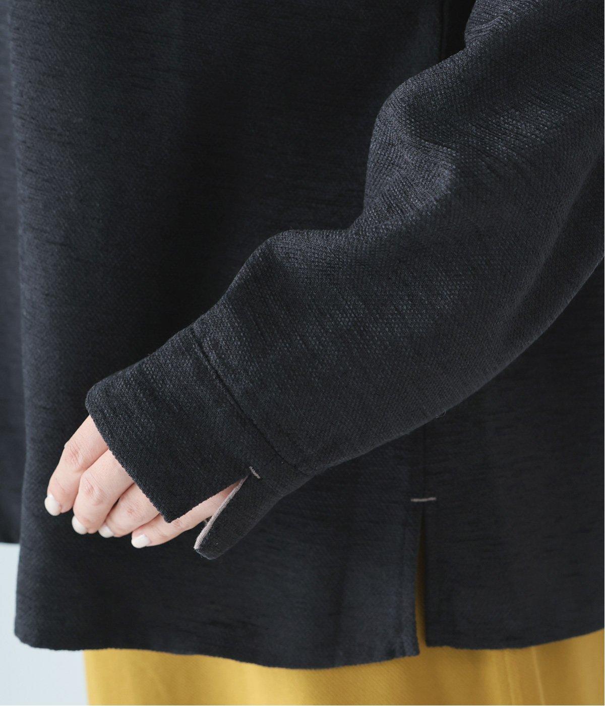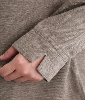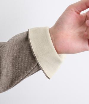 繊細でやわらかな起毛感が特徴の、見た目にもあたたかみが感じられる生地。しっかりとした厚みがありながらもやわらかな風合いで、イージーな着用感をアシストしてくれます。
