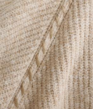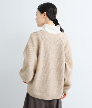 チクチク感のないとてもやわらかな風合いと伸びのよさが魅力のニットです。まるでヤクニットのようなふんわりとしたやさしい表情もポイント。ほどよい厚みがあり寒さの厳しい時期にも重宝します。