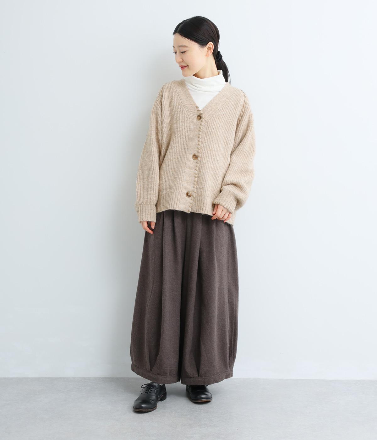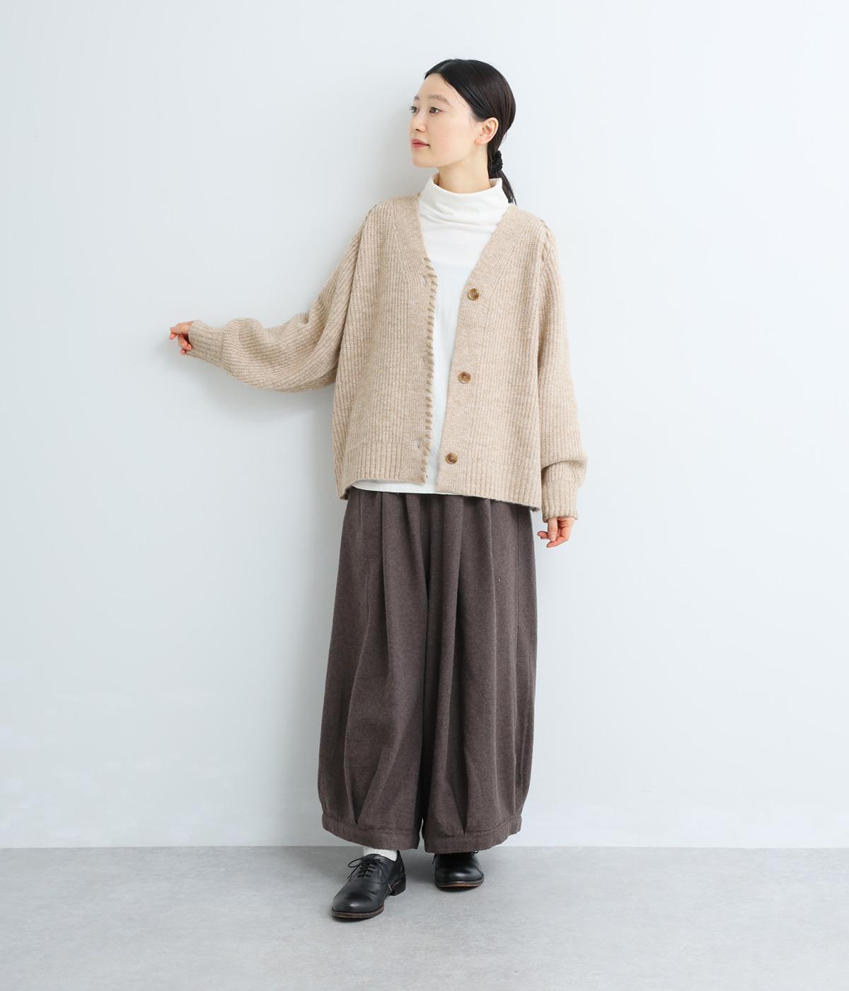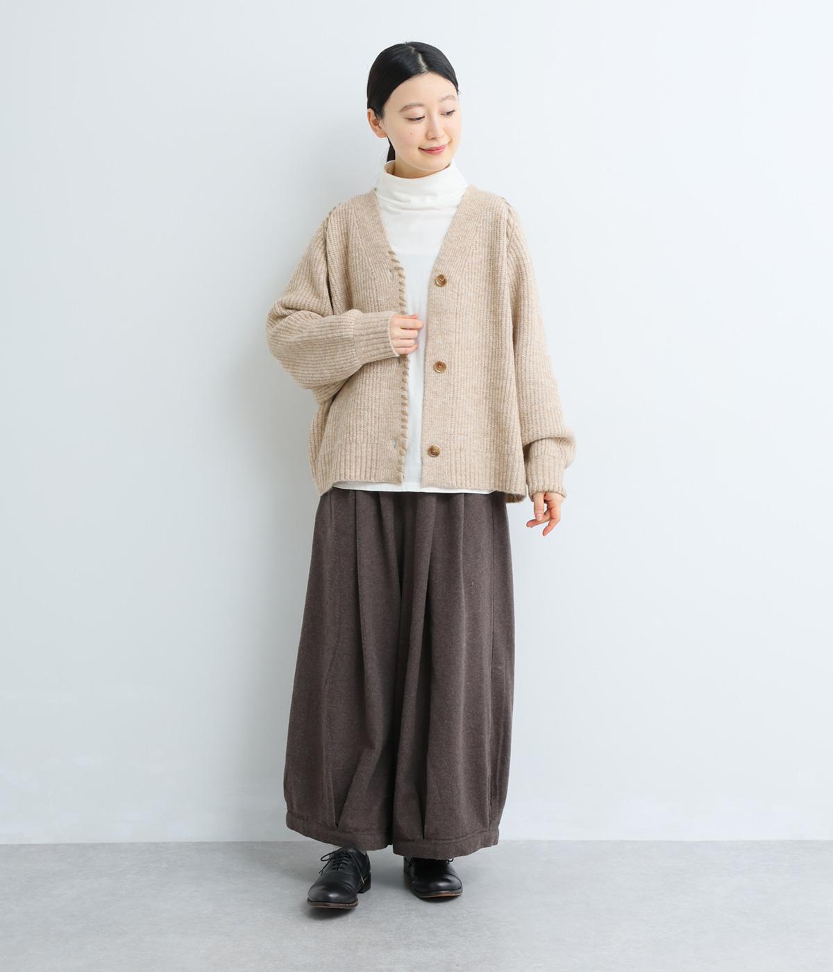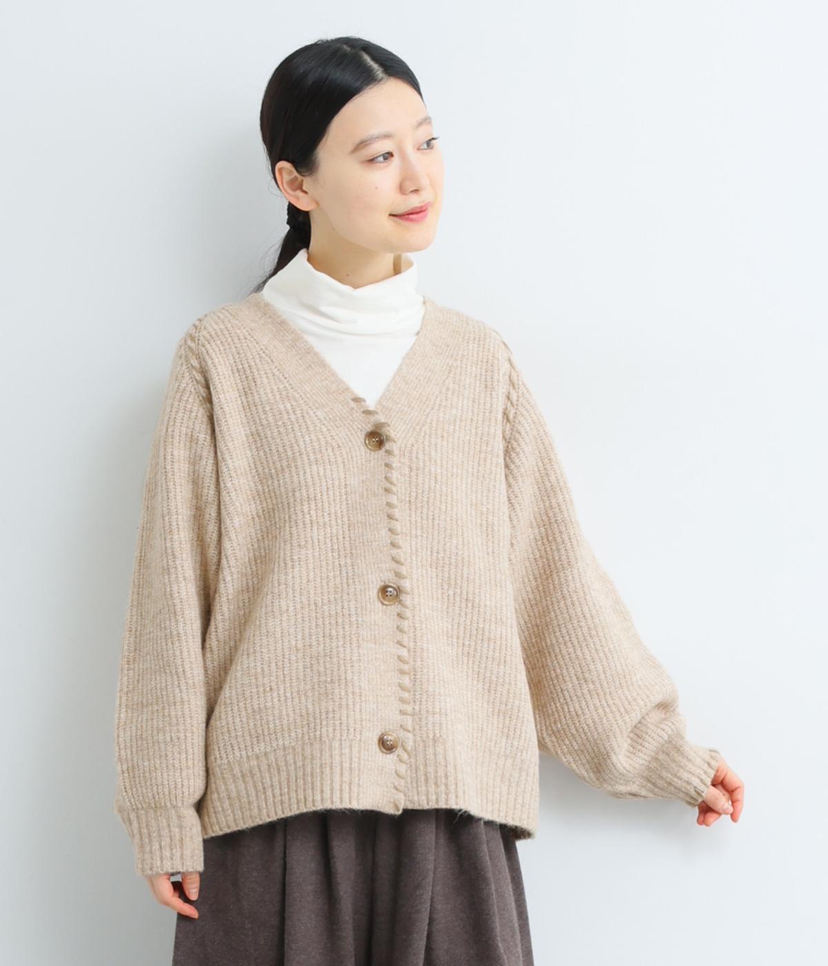 チクチク感のないとてもやわらかな風合いと伸びのよさが魅力のニットです。まるでヤクニットのようなふんわりとしたやさしい表情もポイント。ほどよい厚みがあり寒さの厳しい時期にも重宝します。