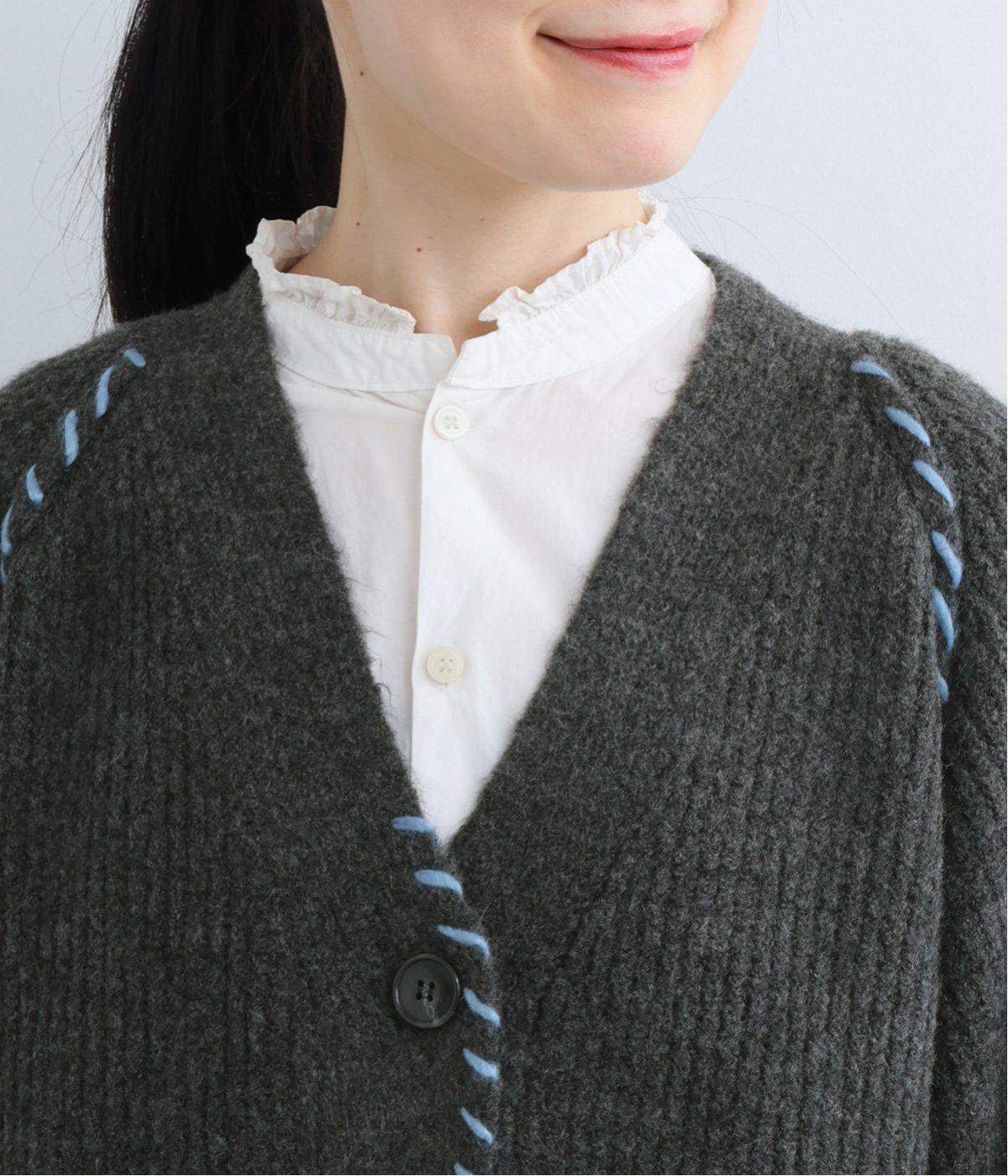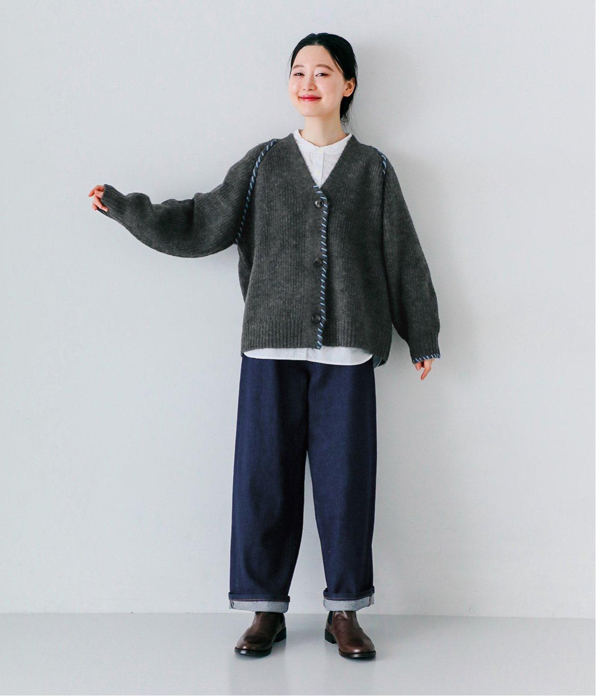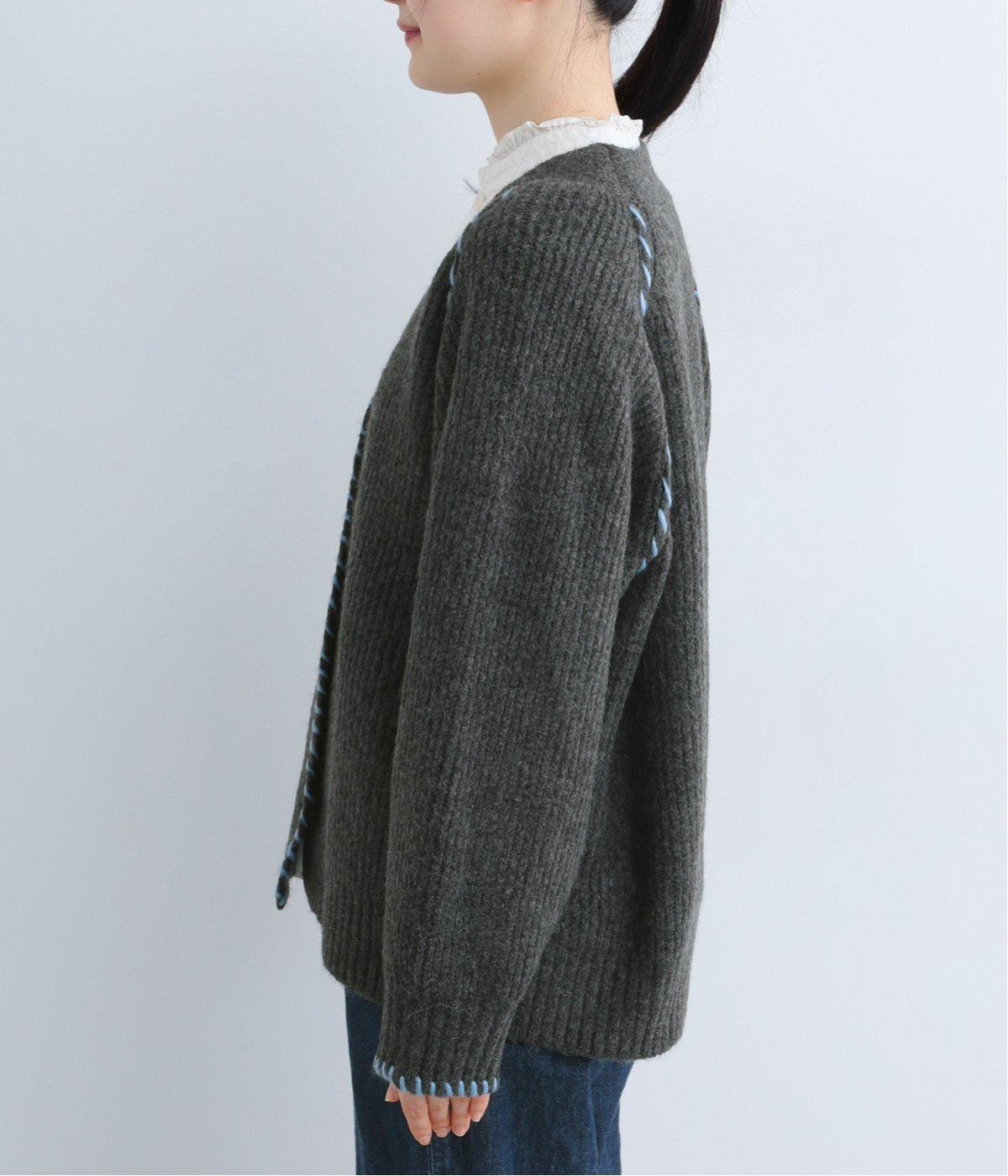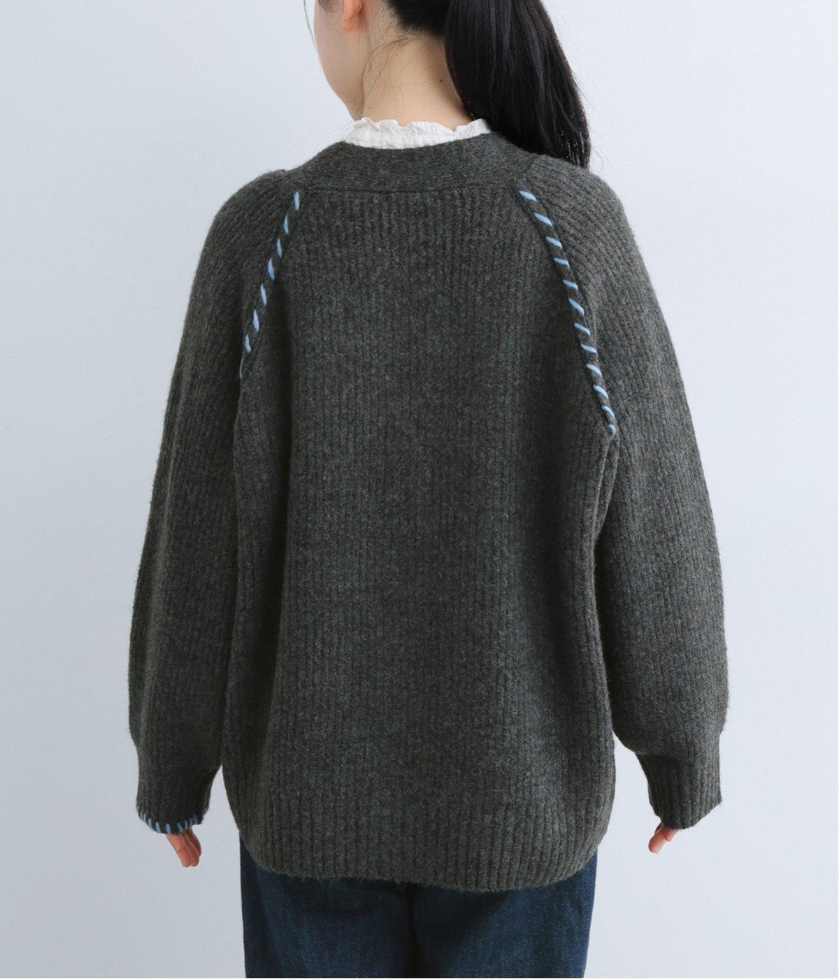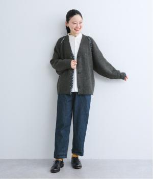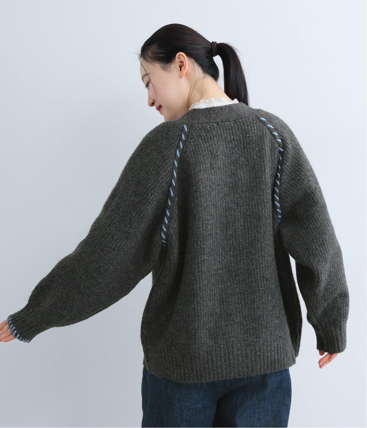 配色ステッチをきかせた大人かわいいカーディガン。あえて左のみステッチを入れた袖口がさりげない遊び心を感じさせます。シルエットは全体にゆとりを持たせ、装いを選ばず羽織りやすいのが◎。深めのVネックは顔まわりをすっきりと見せてくれます。