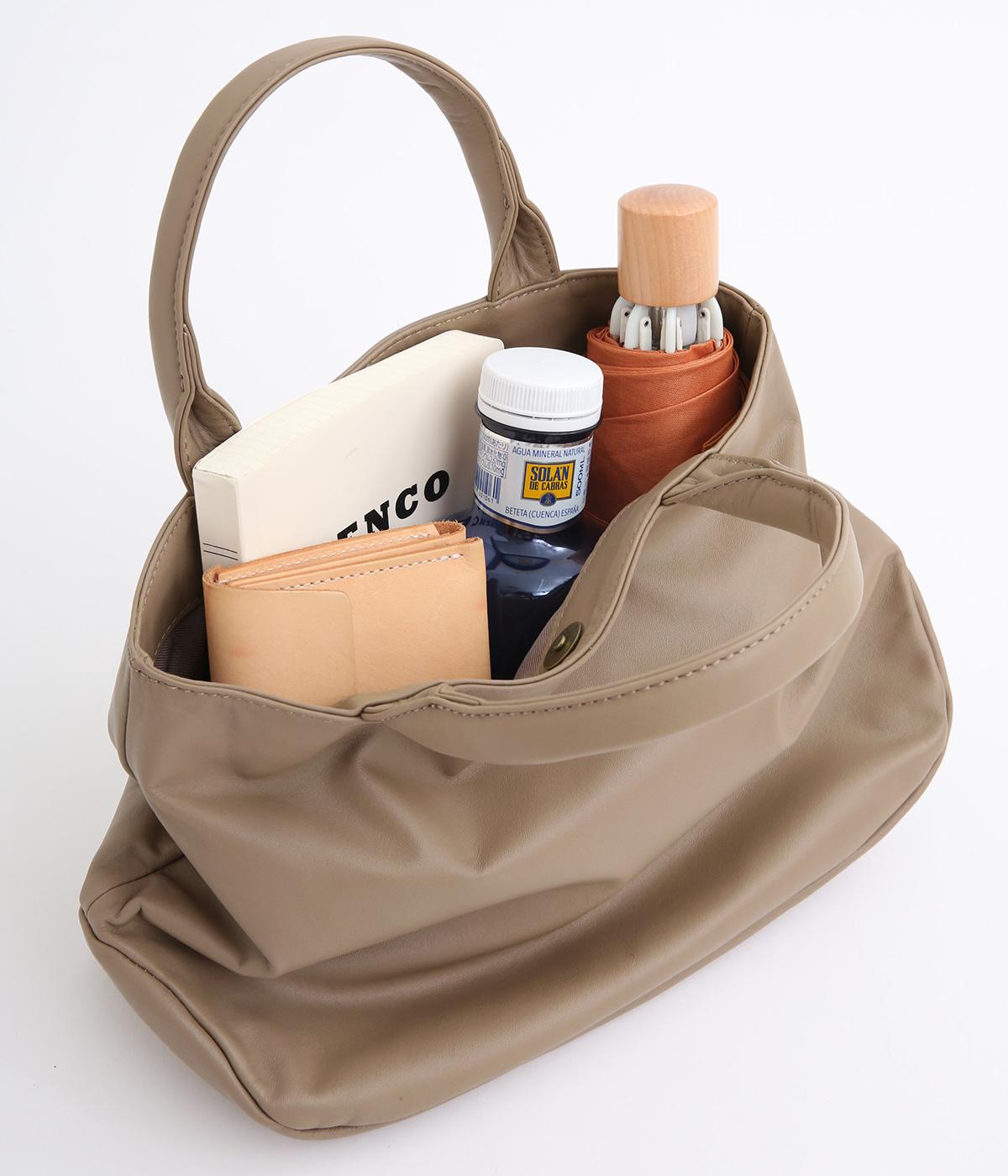 軽やかでふんわりとしたエアリー感があり、やわらかな手触りが特徴のカウレザーを使用しています。撥水加工をほどこしているので、レザーならではのクラス感を味わいながらも実用性も◎。