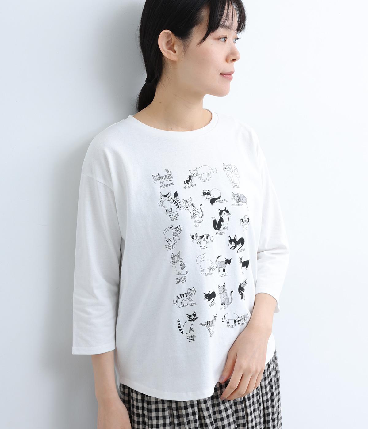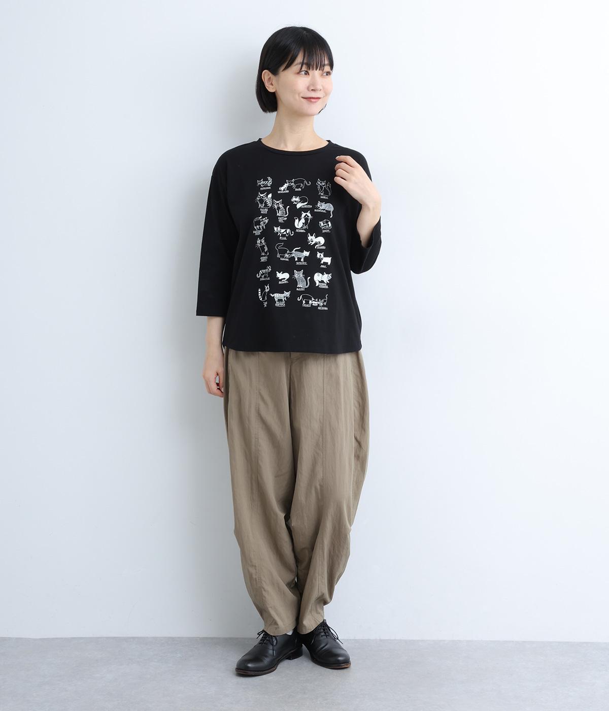 思い思いに過ごしている猫たちが集まった大人かわいいプルオーバー。さまざまな種類を英語で表現したユニークさも◎。前後差をつけた裾はラウンドさせてやさしい雰囲気に仕上げました。8分袖でロングシーズン活躍。