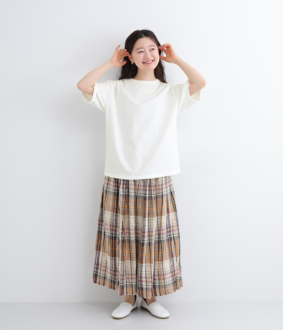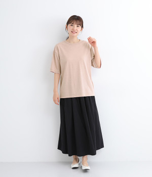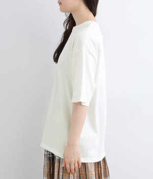 デイリーのスタイリングに欠かせない、シンプルな無地のTシャツ。洗いをかけたようにくたっとソフトな風合いのコットン仕立てです。肉感を拾いにくい、ゆるっと大きめなシルエットは風通しも良好。ひじにかかるほどの長めの袖丈で、肌の露出がおさえられるのも好ポイントです。色違いでそろえておきたい、使い勝手の良いベーシックカラーから、大人っぽいくすみカラーまでラインナップしています。