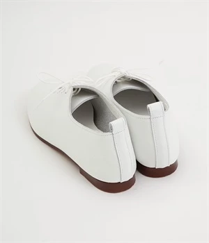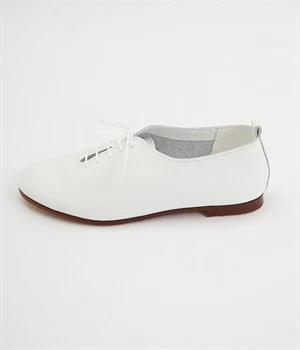 革一枚仕立てのフラットなデザインが魅力のレースアップシューズです。コーディネートを引き立てるベーシックなデザイン&色がポイント。季節を問わず使いやすく、足元が品よく決まります。靴紐は細めのものをセレクトして女性らしい華奢な印象に。中敷きはふかふかと厚さもあり、歩きやすさも抜群。丈夫で軽い日本製の部品を使用しています。