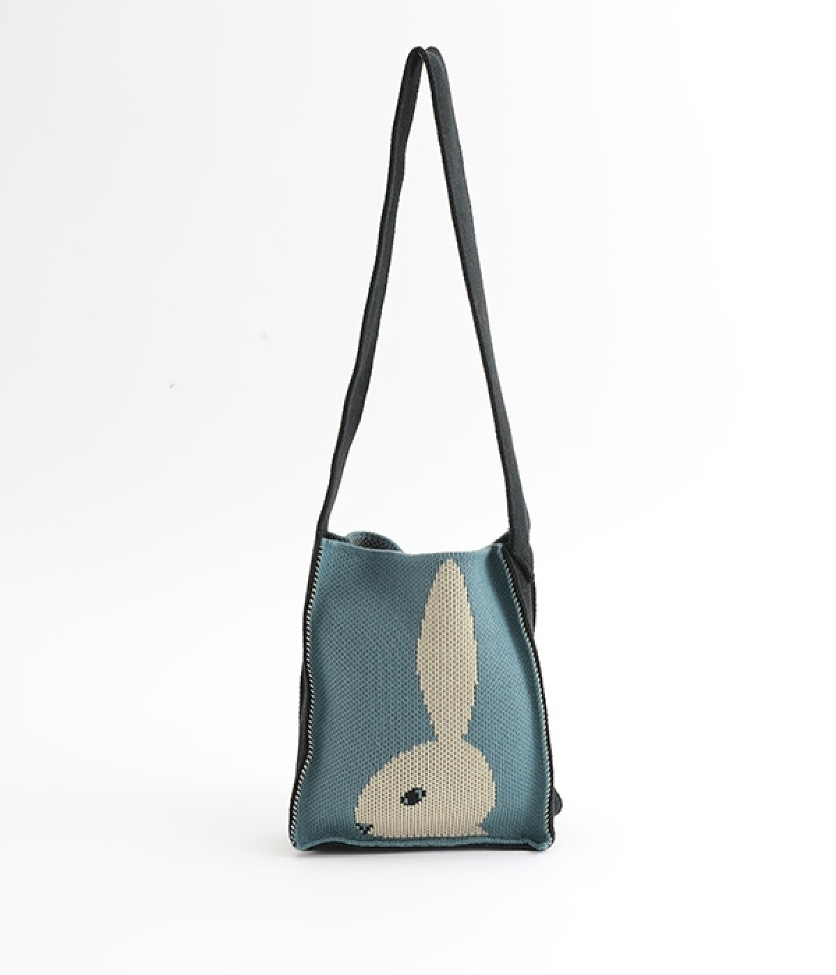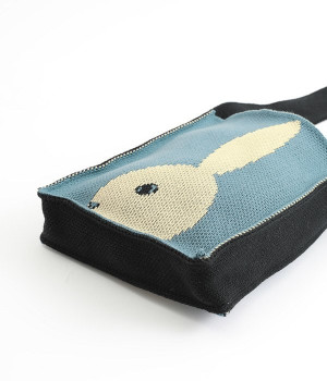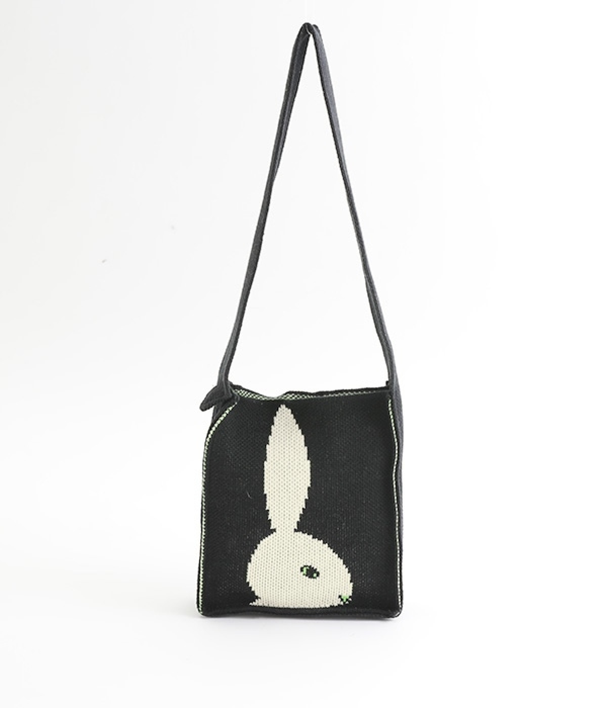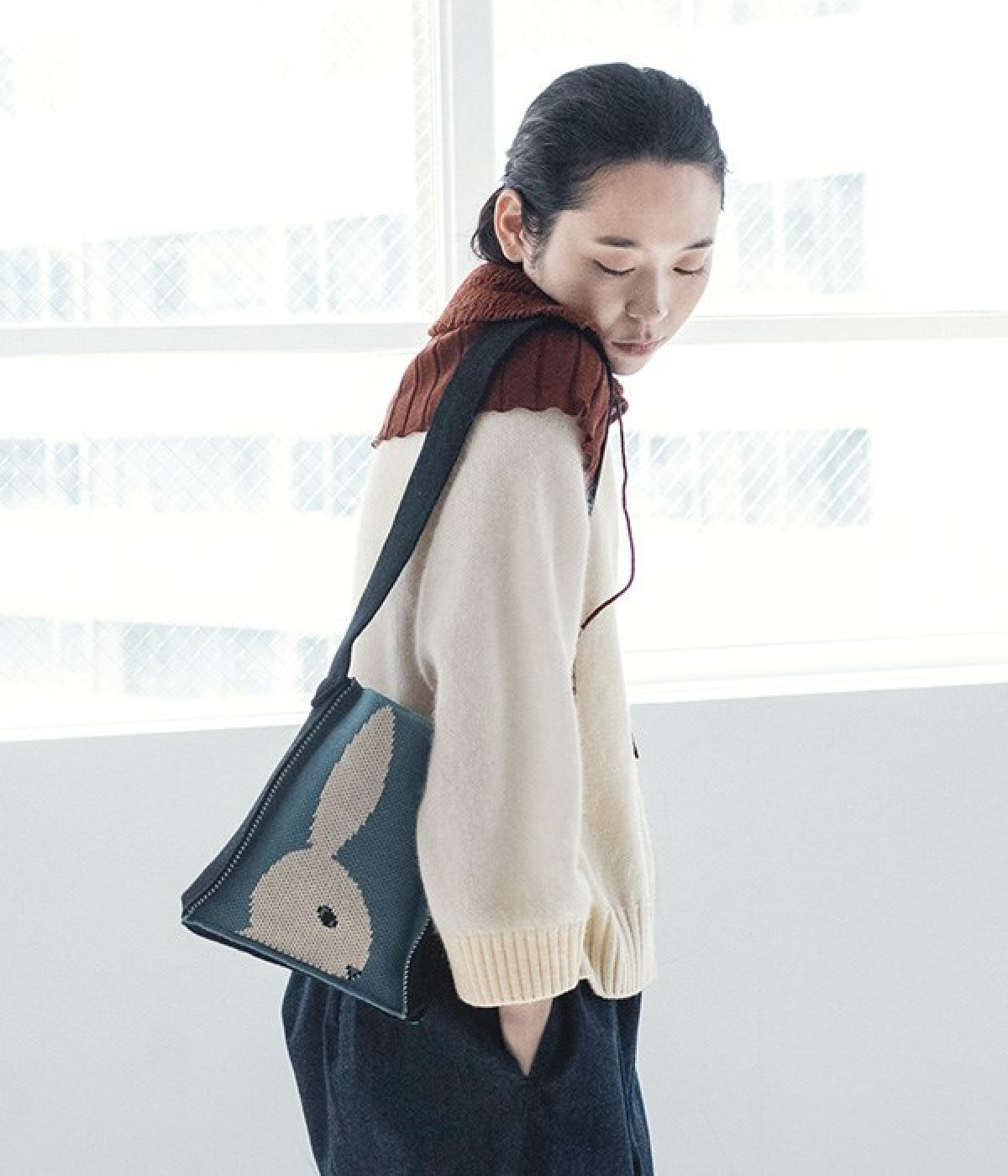 綿糸で度詰めに編み立てたジャカード柄のニットショルダーバッグです。財布や携帯電話などの必需品がおさまる、ちょうどいいサイズに仕上げました。肩に軽くかけられる、太めのワンショルダータイプ。インパクトのあるウサギの横顔がアクセントを添えてくれます。落ちついた色合いでコーディネートを選ばないのもうれしいポイント。
