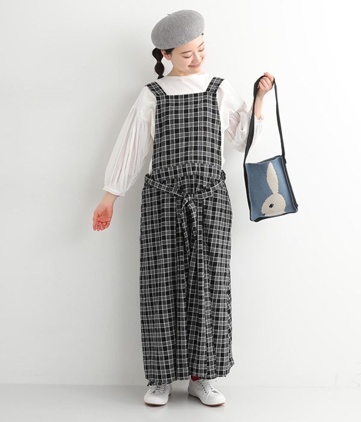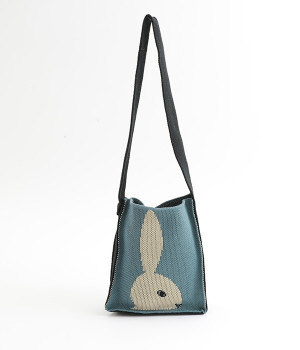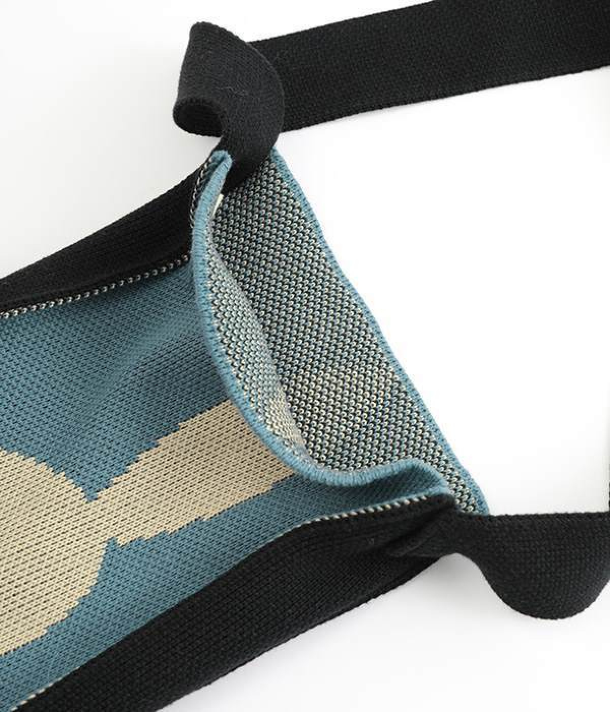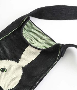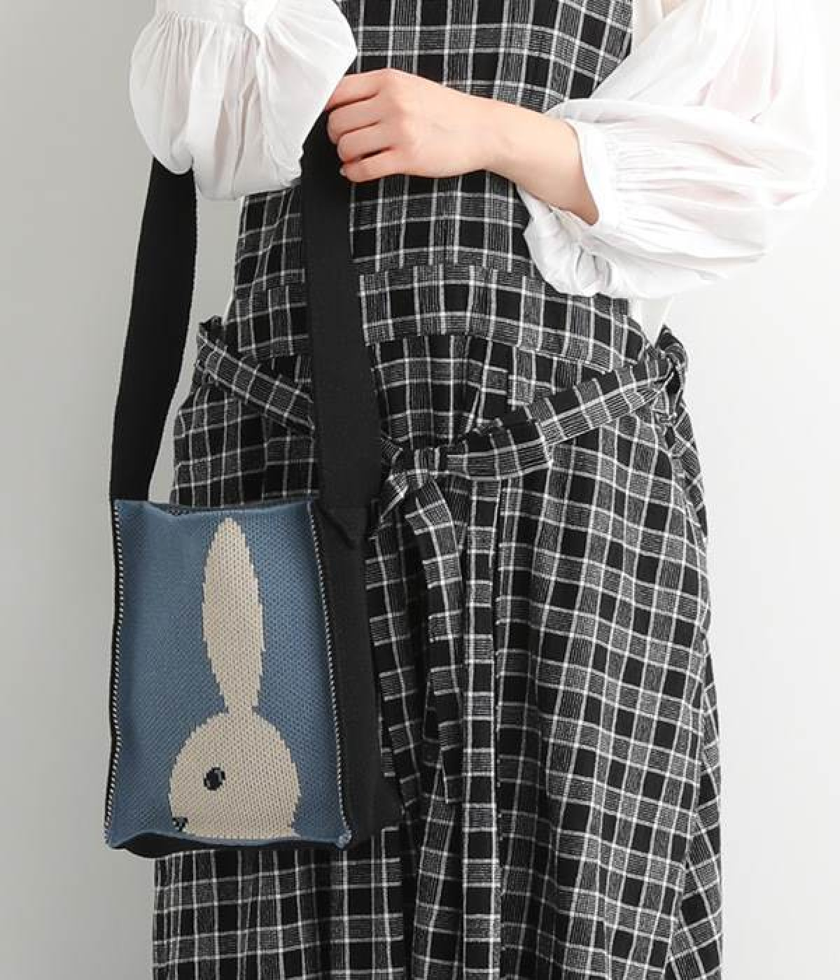 綿糸で度詰めに編み立てたジャカード柄のニットショルダーバッグです。財布や携帯電話などの必需品がおさまる、ちょうどいいサイズに仕上げました。肩に軽くかけられる、太めのワンショルダータイプ。インパクトのあるウサギの横顔がアクセントを添えてくれます。落ちついた色合いでコーディネートを選ばないのもうれしいポイント。