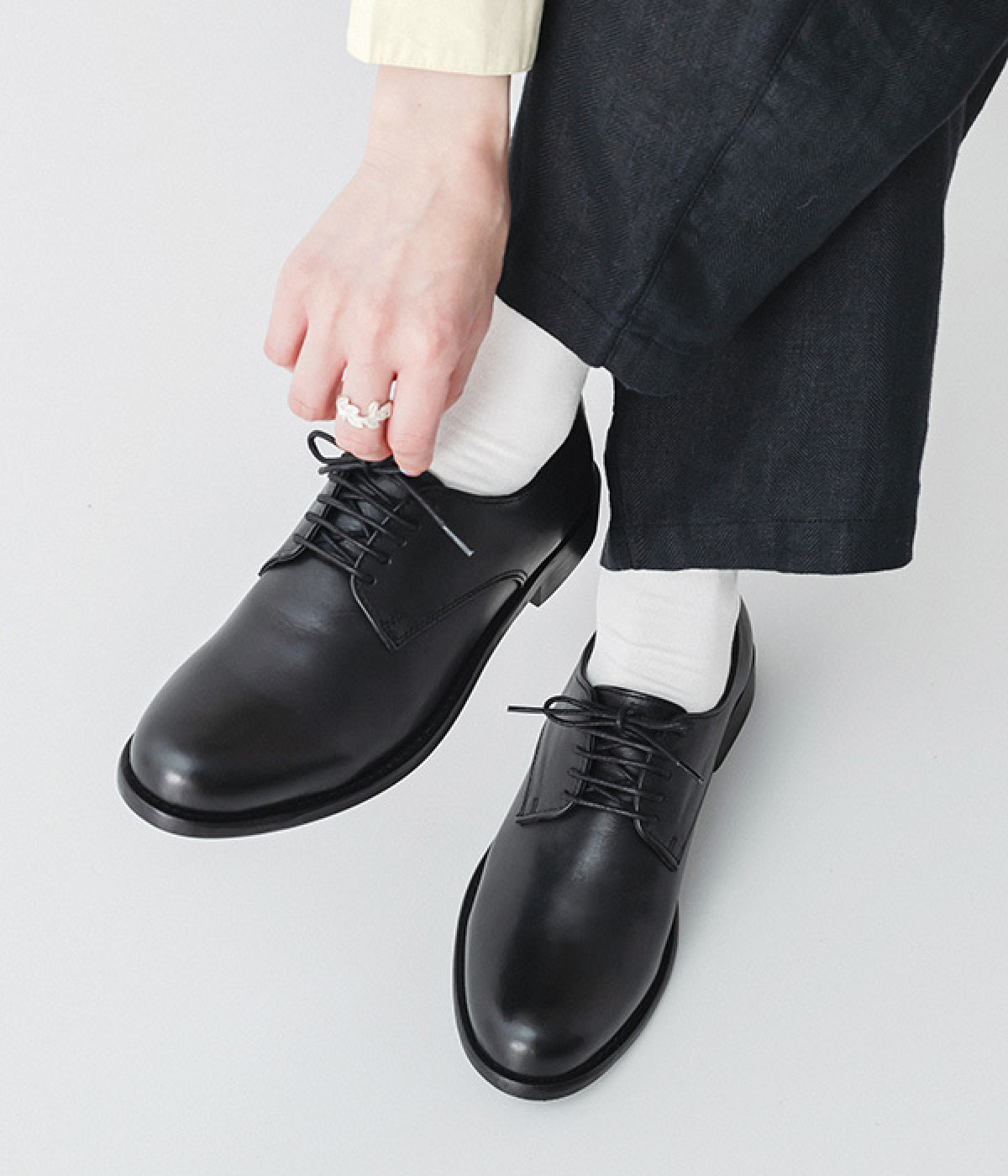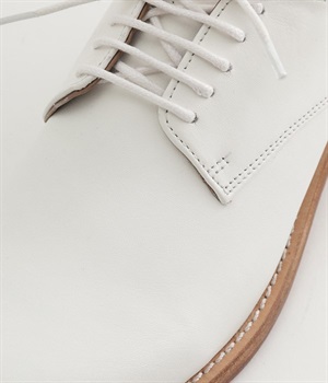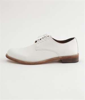 アッパーにしっかりとした上質な牛革を使用したレースアップシューズ。アウトソールにもレザーを使い、通気性に優れた快適なはき心地を実現しました。定番使いできるシンプルでミニマムなデザインが魅力で、合わせるコーディネートを選ばず重宝しそう。はき続けるほどに柔らかく足になじむので、長くはいて自分なりの一足に仕上げたいアイテムです。