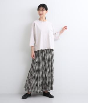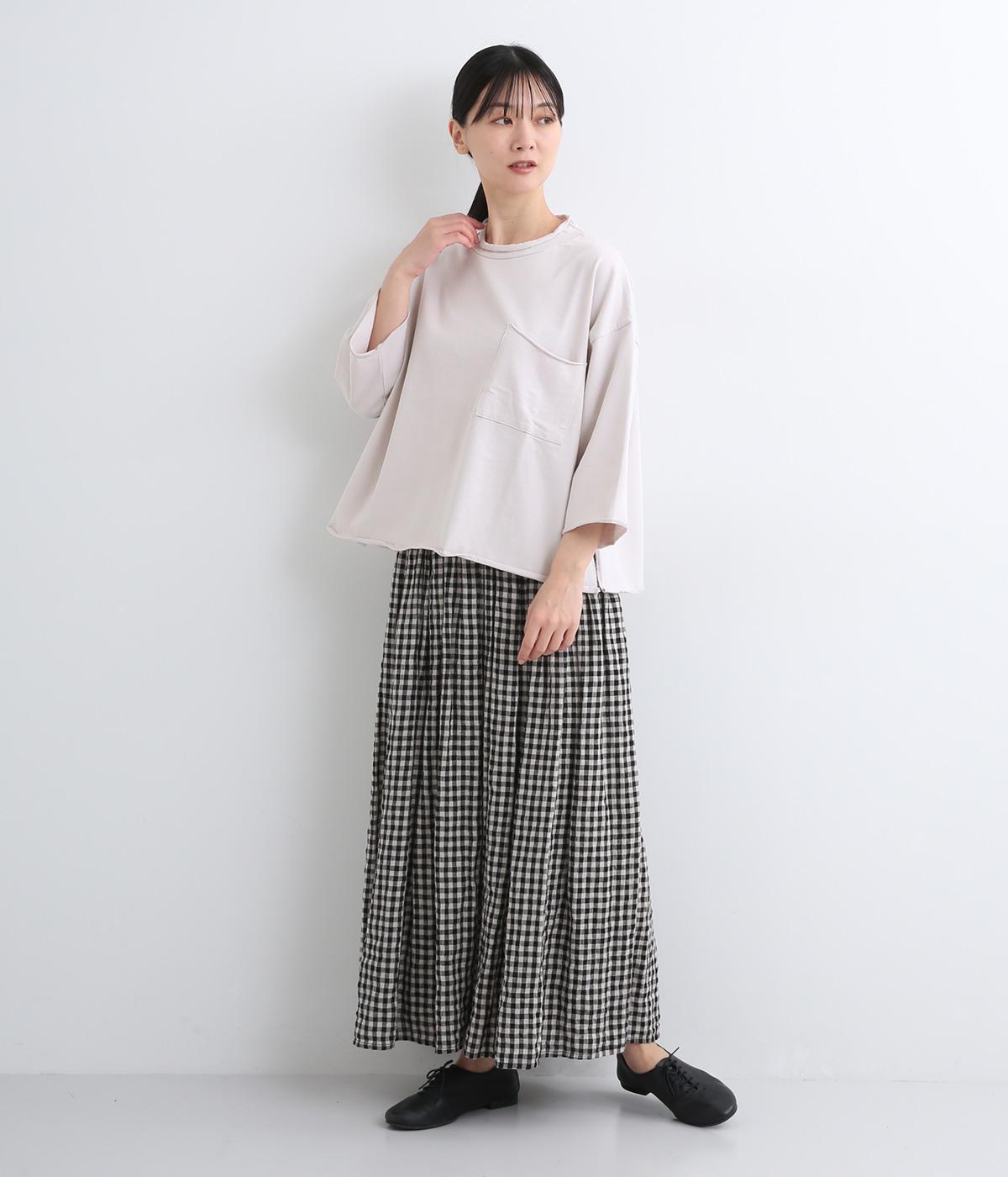 適度にハリと肉感のある、コットン100%のPABLOジャージー素材を使用。肌にはりつきにくく、ストンと落ちる質感が特徴で、カジュアルながらきちんと感も演出します。