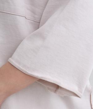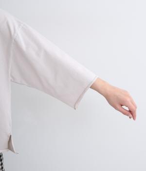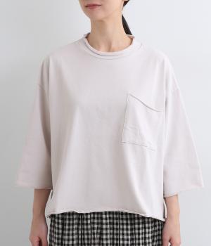 ゆとりのあるシルエットでさりげなく体型カバーを叶えるプルオーバー。襟、袖、裾はカットオフ始末になっており、くるんと巻いた生地がこなれ感を出してくれます。胸元の大きなポケットも小気味よいアクセント。日常使いに便利な1枚です。