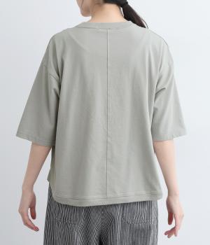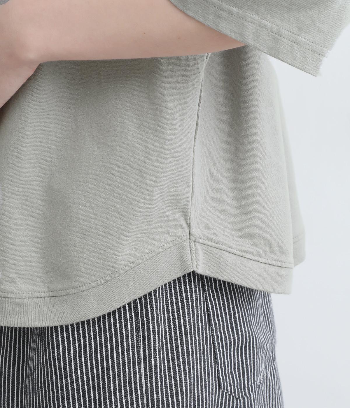 ふっくらしたボリューム感と、ドライタッチなコットン天竺素材を使用。汗ばむ季節でも肌ばなれがよく、べたつきにくいのが特徴です。