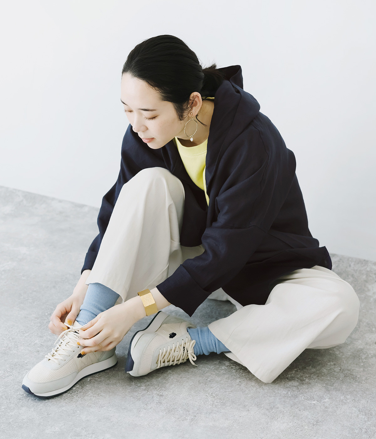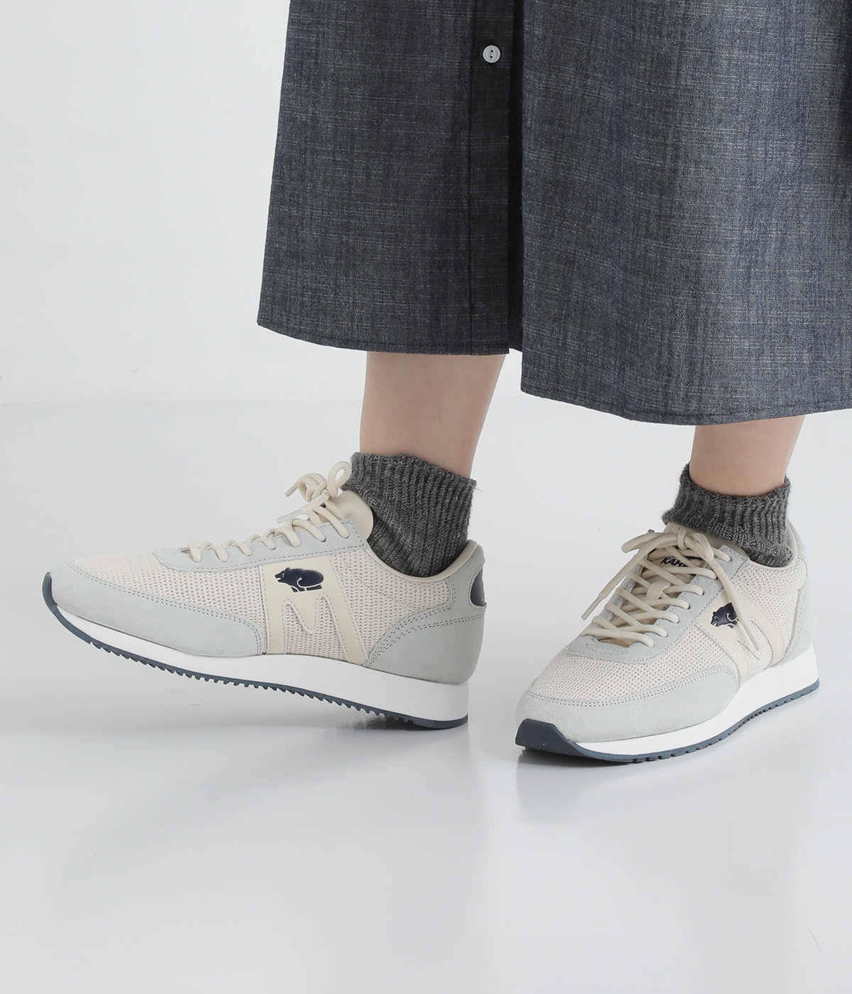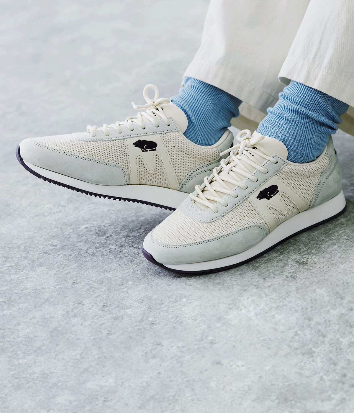 足元をさわやかに印象づけるカラーリングがおしゃれを後押しします。クラシックムードただようシンプルなルックスなので、幅広い着こなしにマッチ。ブランド名の由来である熊をあしらったMロゴがサイドを飾ります。かかとにはリフレクティブディテールを取り入れ、機能性アップ。