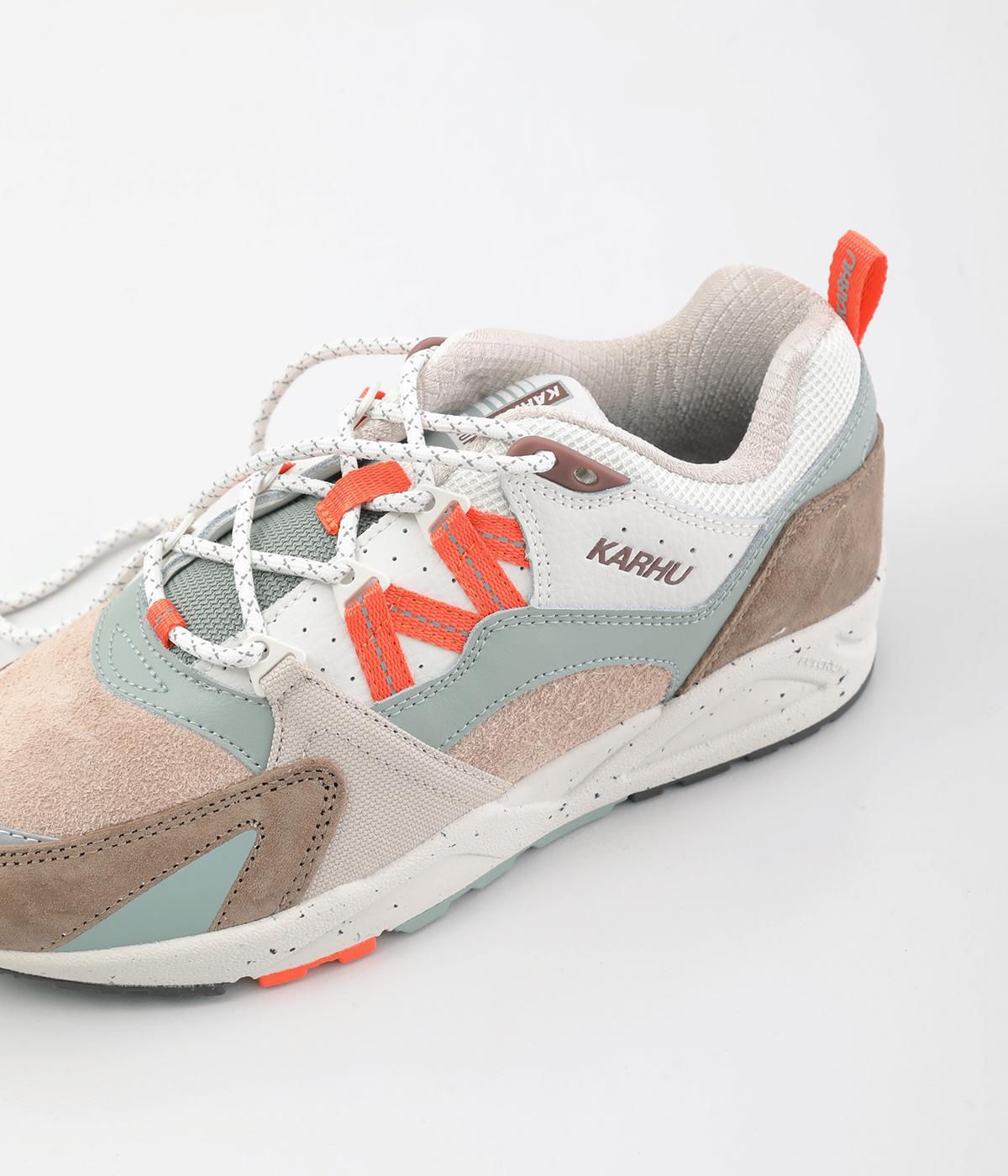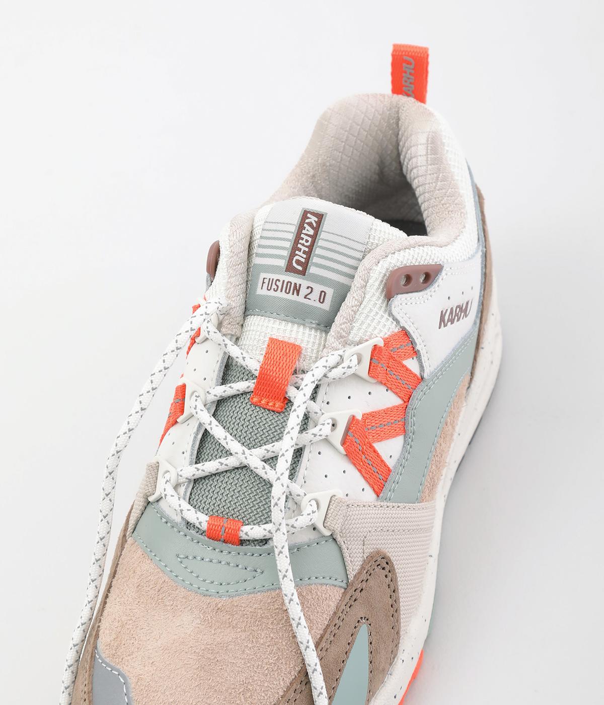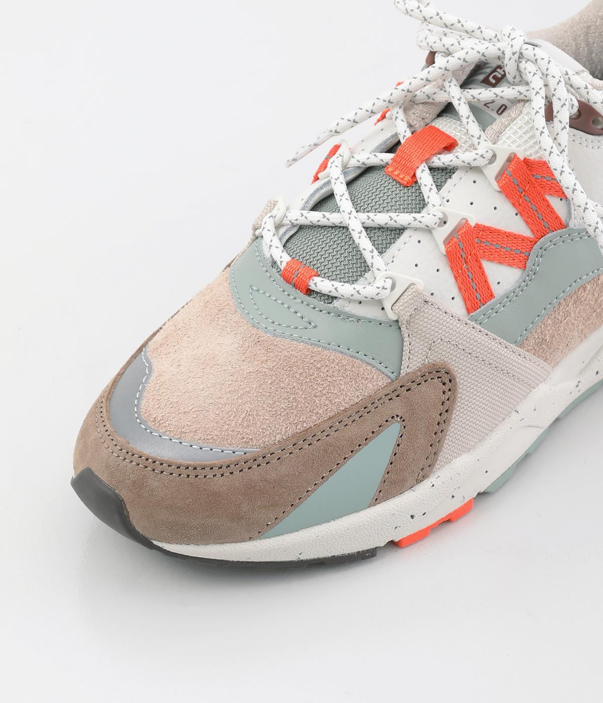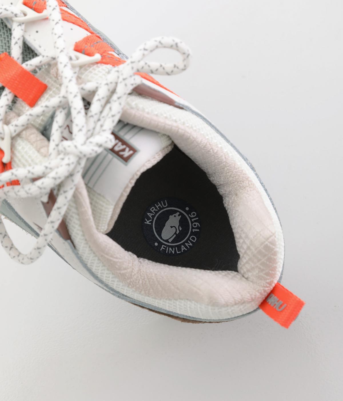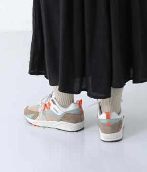 1996年に登場したKARHU「フュージョン」のオリジナルモデルへの敬意を表した一足。やわらかな配色にオレンジをきかせた、コーディネートのアクセントになるカラーリングが魅力です。シューレースには丸紐を採用し、スポーティーなムードを添えました。