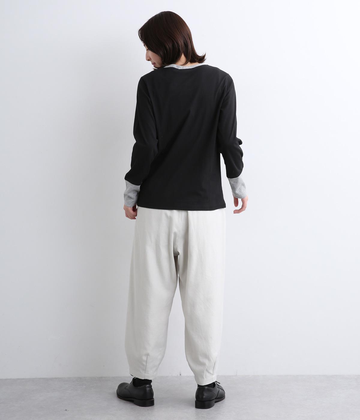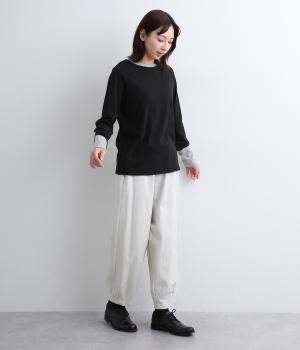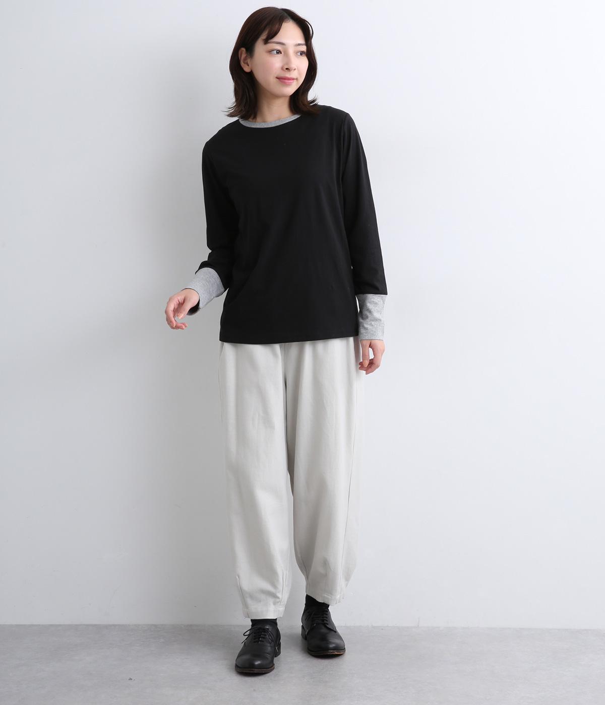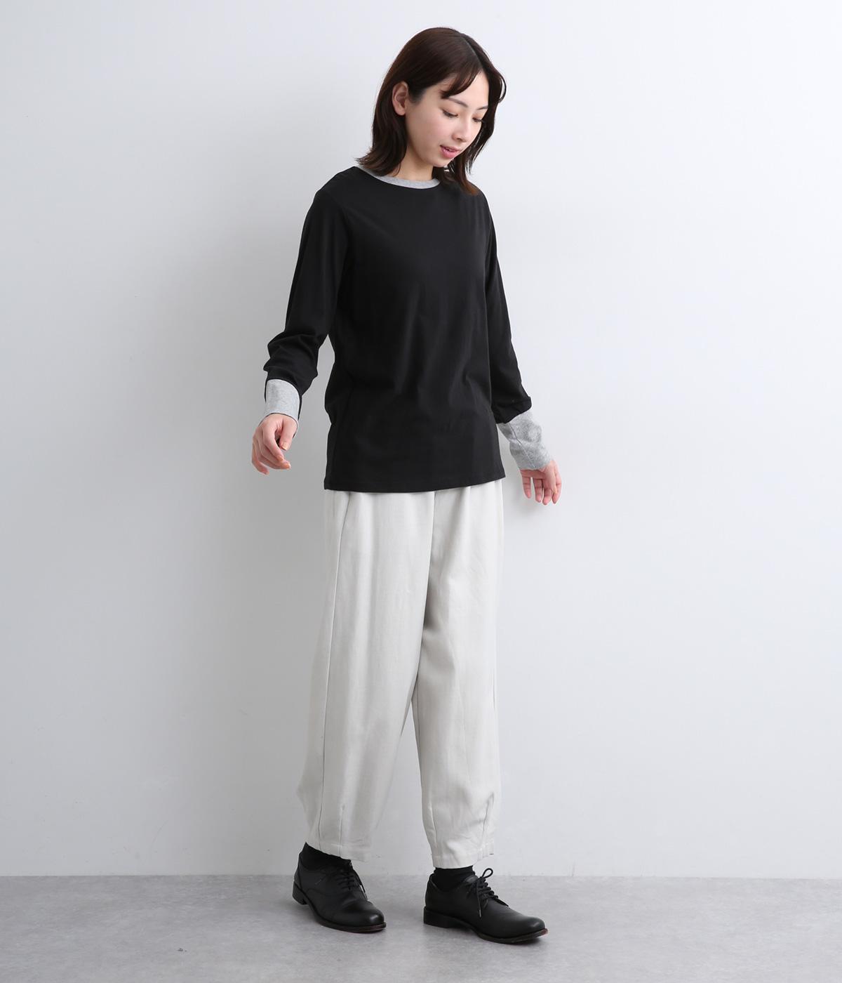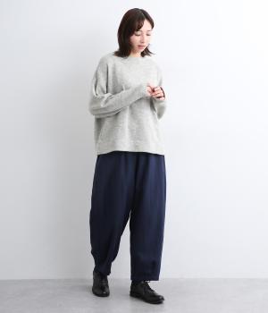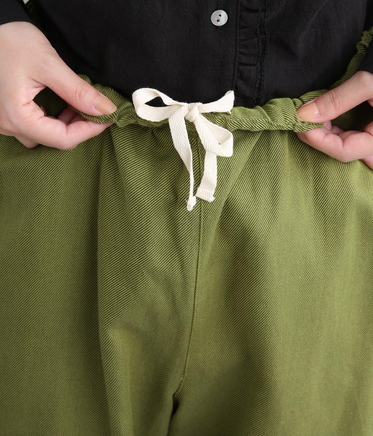 体のラインを拾いにくいコクーンシルエット。裾に向かってすっきりとしぼまるラインが、こなれ感のある着こなしを演出します。裏地付きで安心感があり、ウエストゴム仕様で快適な穿き心地。さまざまなトップスと合わせやすく、着まわし力の高い一着です。
