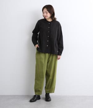やわらかなコットンを上品な綾織生地に仕立てました。やさしく肌になじむ手触りで、自然な風合いが魅力です。しなやかな質感がきれいな落ち感をつくります。
