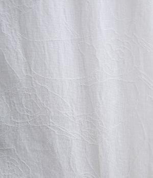 さりげない花柄を織り込んだジャカード生地です。首元のフリルもあたりがやわらかく、ドライでさらりとした着心地です。立体感のある表面がエレガントな雰囲気を演出します。