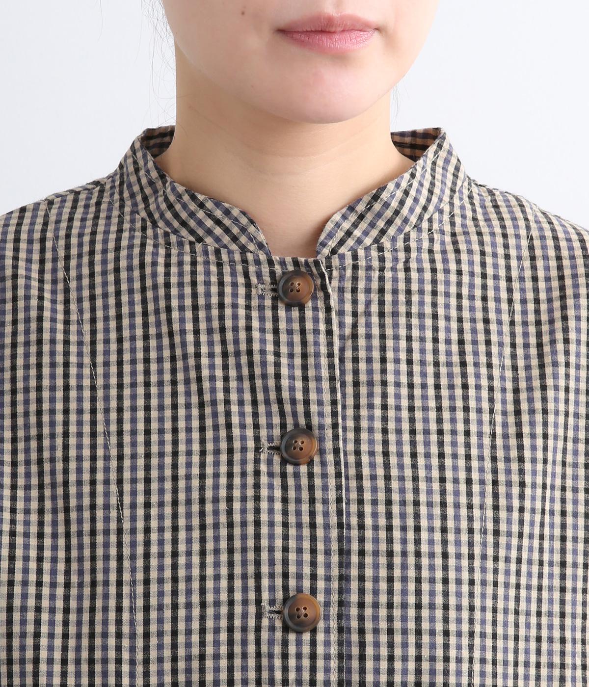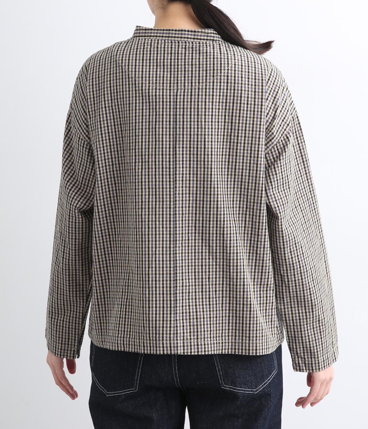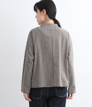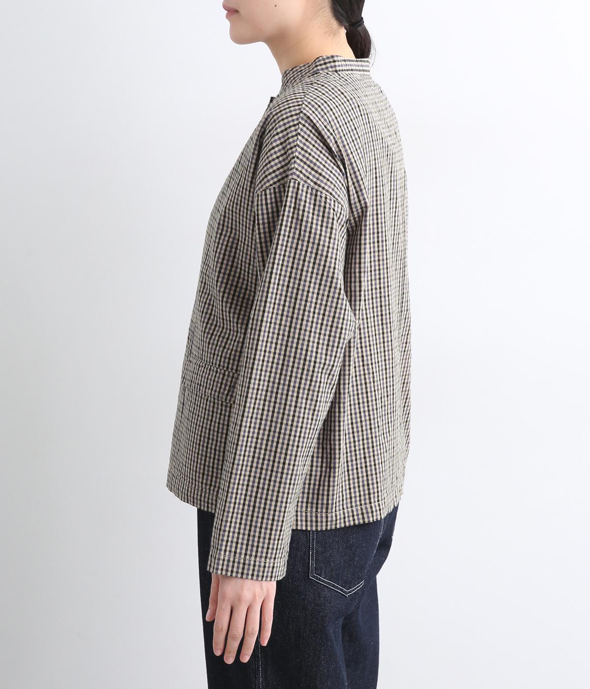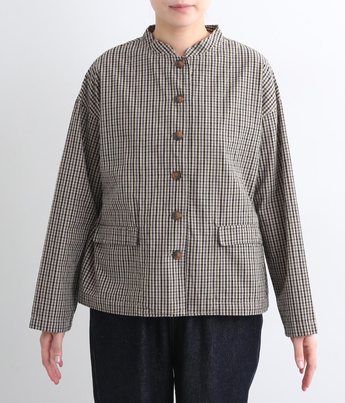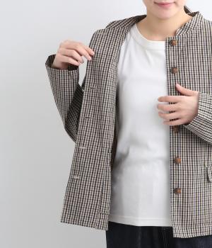 高密度コットンネルーカラージャケット(ガンクラブチェック/綾織-F)
