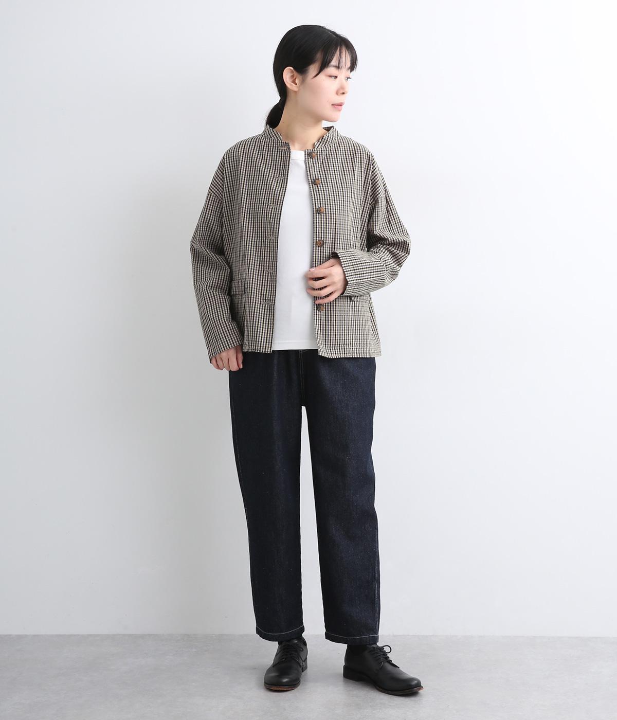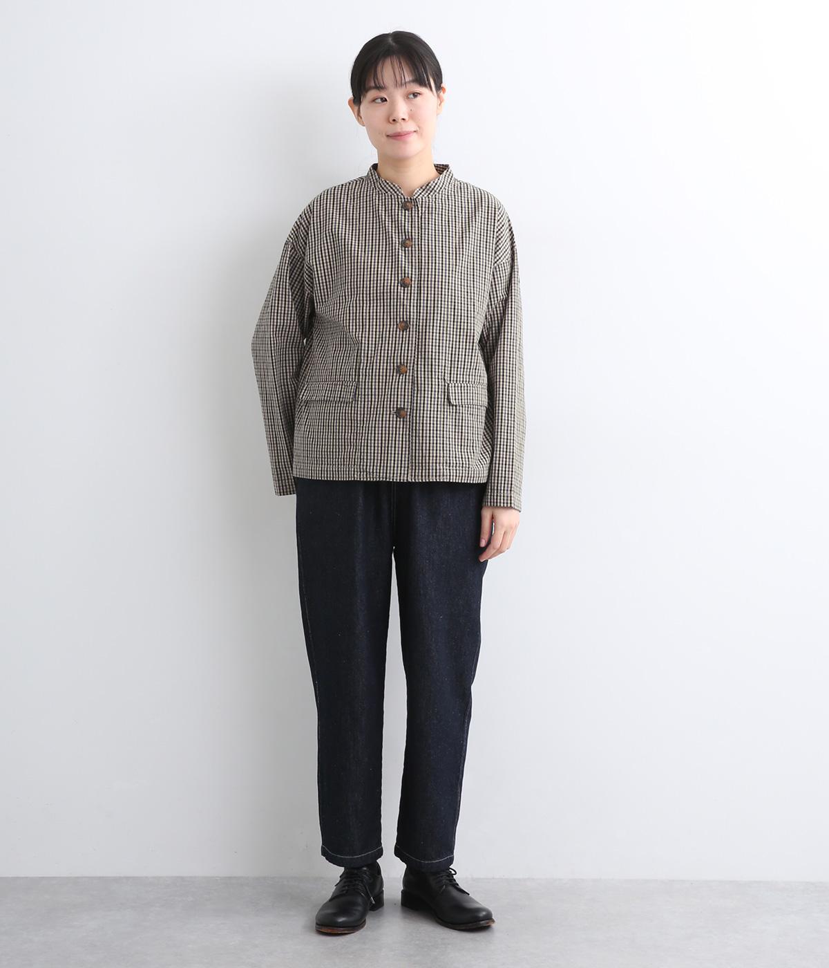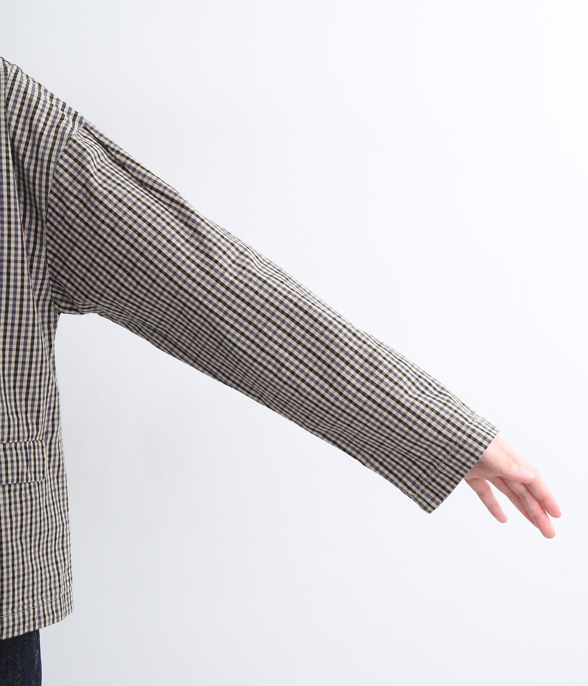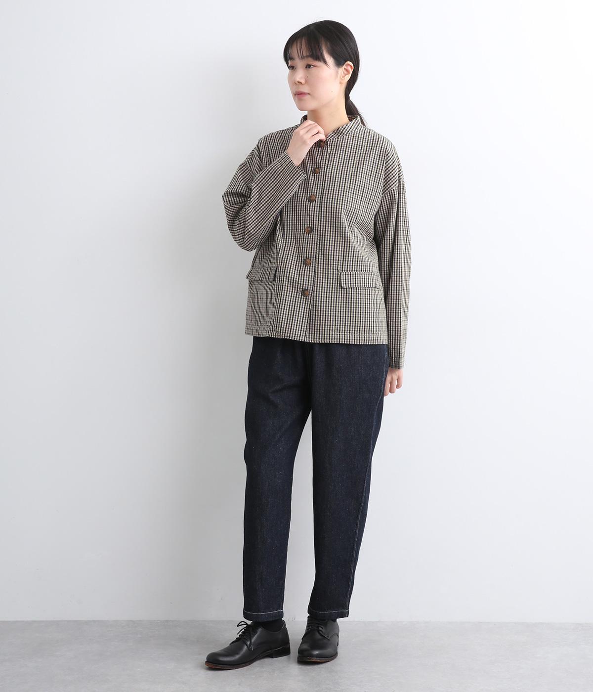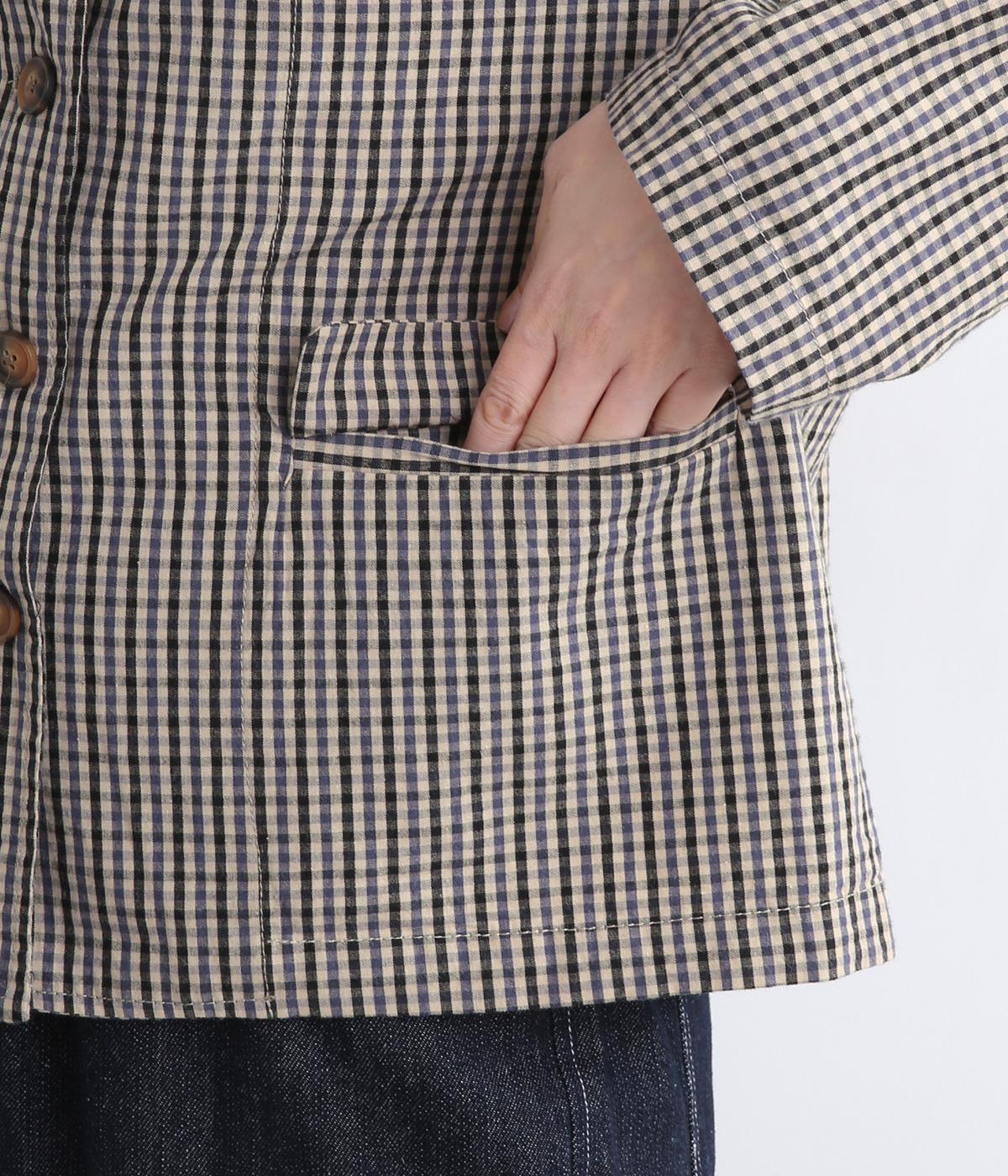 高密度コットンネルーカラージャケット(ガンクラブチェック/綾織-F)