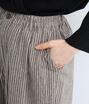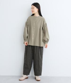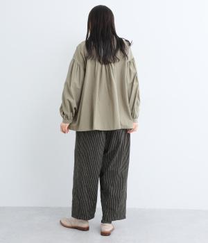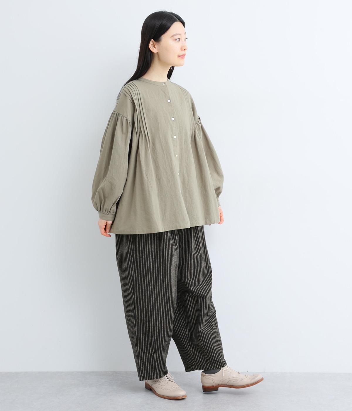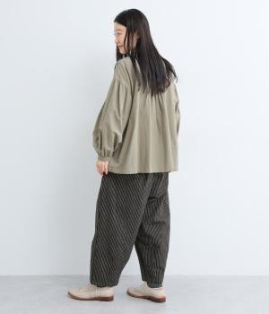 起毛をかけることでいつものストライプとまたちがった印象を与えるリネンコットン生地を使用。厚手すぎないので着用しやすく、裏面はさらっとしていて肌あたりも快適。