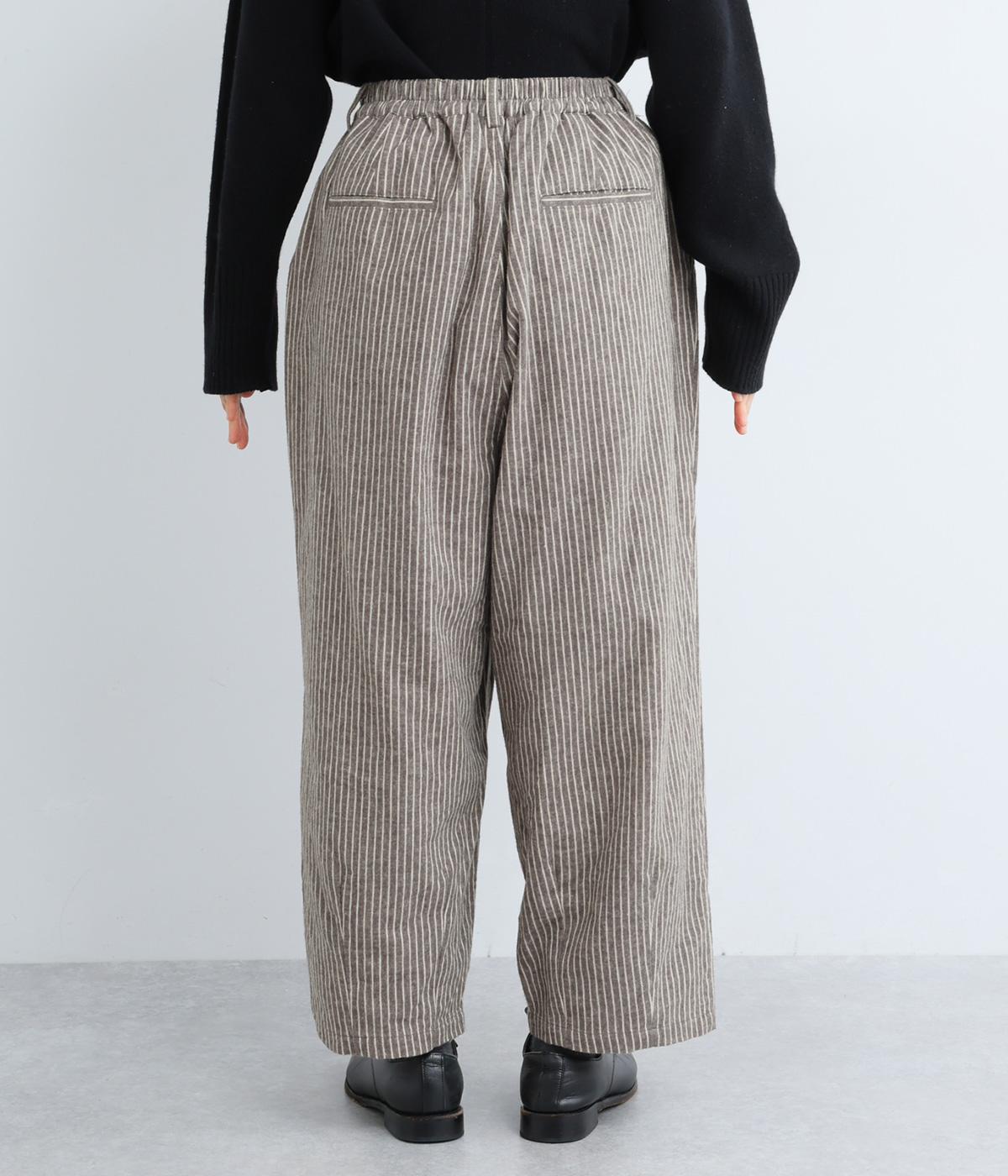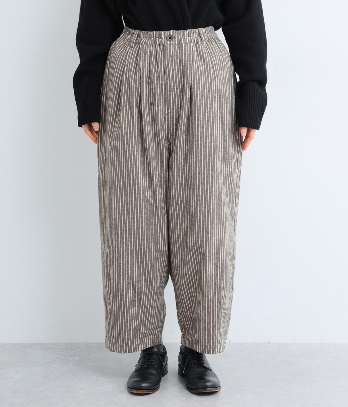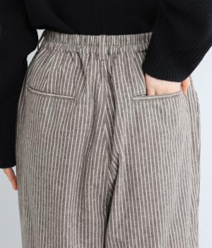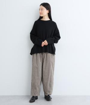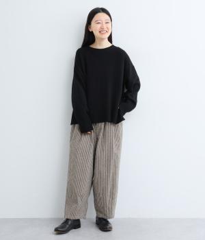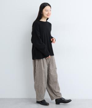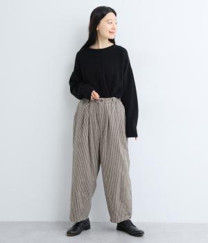 ほわっとした起毛感にゆったりとしたバルーンシルエットが独特のやわらかな雰囲気を生むパンツ。ラフだけど手抜きに見えないこなれ感があり、シンプルなトップス合わせでもさまになります。前ファスナーにウエストゴム仕様。