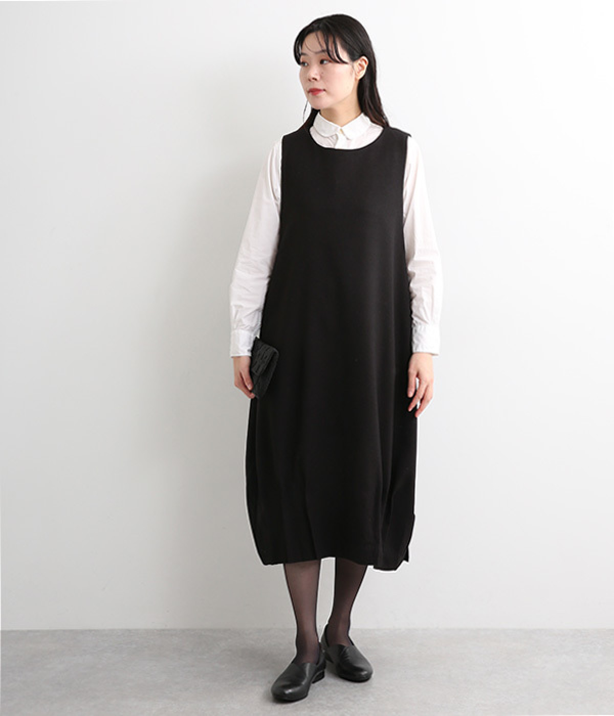 フォーマル裾タックコクーンワンピース(ブラック-ONESIZE)