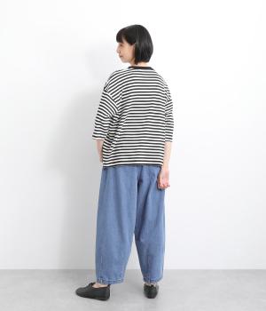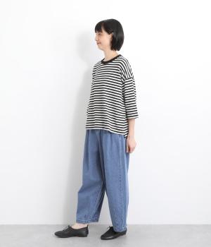 着用初期からやわらかで通年通して穿き心地のいいコットンデニム生地を採用。インディゴ染めならではのエイジングもたのしみで、永く愛用できます。