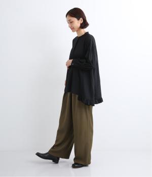 ウエスト部分がラップ仕様になったパンツです。ジップ部分が見えないので、お腹周りをカバーしやすくすっきり見せが叶います。ほどよいワイドストレートシルエットで、脚の形をきれいに見せてくれるのもうれしい。