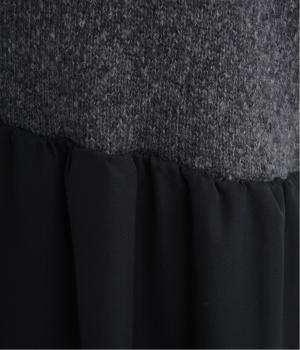 ニット部分はしっとりとした質感でほどよく厚みがあります。スカート部分はドレープやギャザーがきれいに出るなめらかな生地感。光沢があり、シックな雰囲気です。
