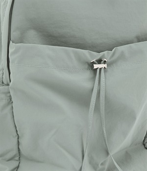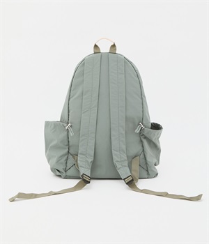 フロントやサイドのドローストリングポケットがデザインポイントになっています。大容量ながらラフな佇まいが魅力で、ワンピースなどガーリーテイストなスタイリングにも取り入れやすいリュックです。