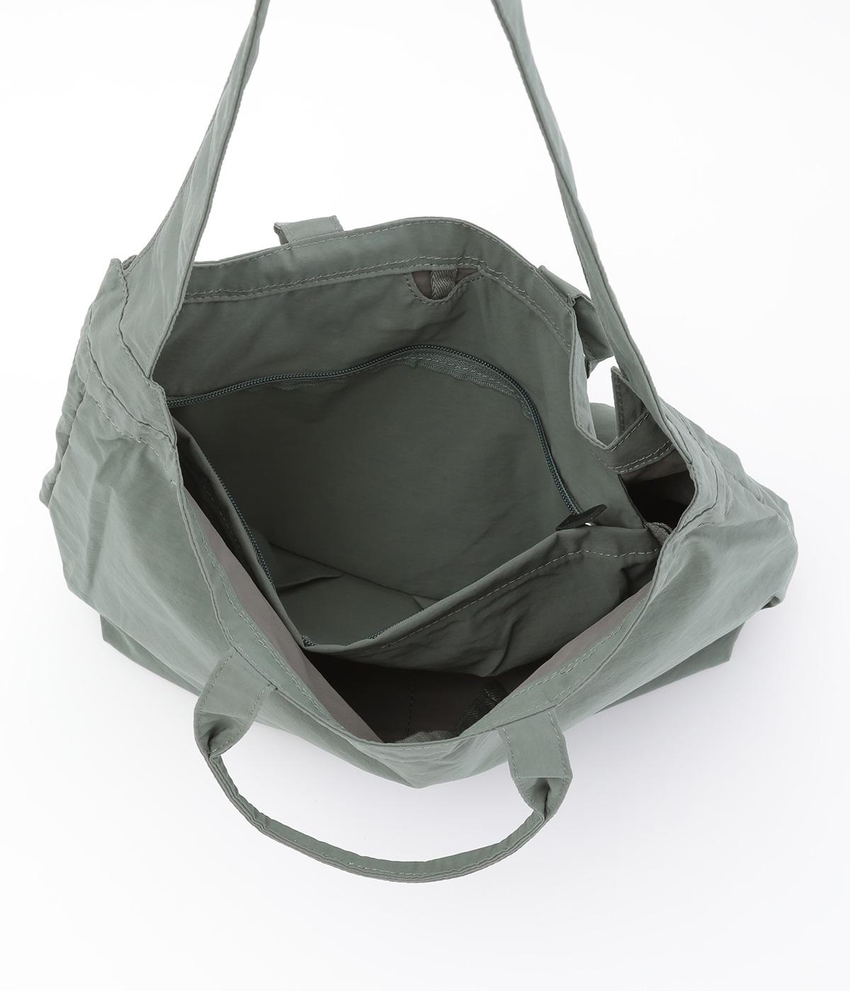 フラップポケットを外使いすることによってメッセンジャーバッグに、中使いすることでトートバッグとしても使用できます。フラップポケットにはロングウォレットなどの小物が収納可能。本体はA4サイズが入るサイズ感です。