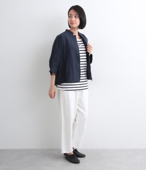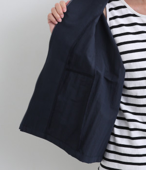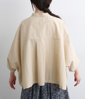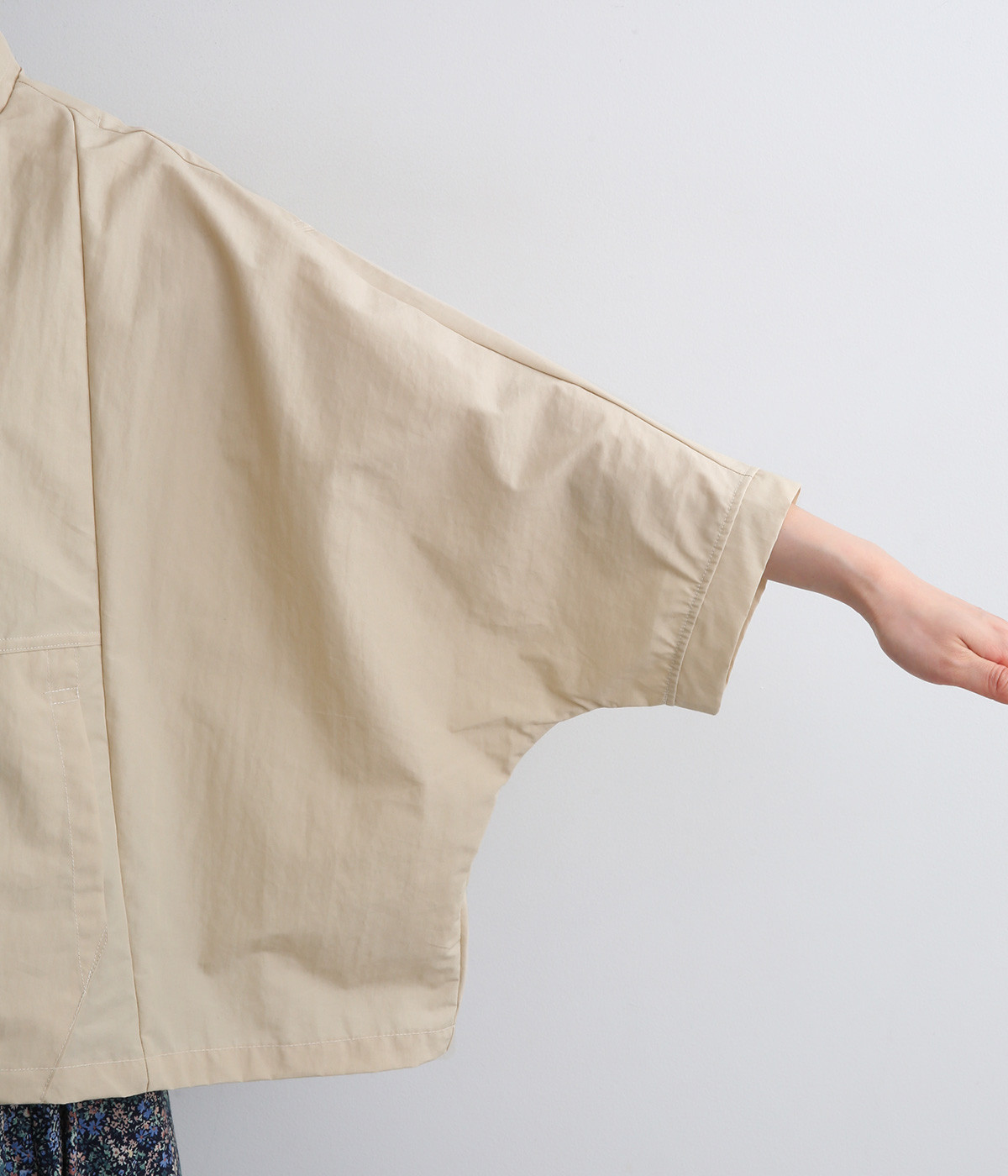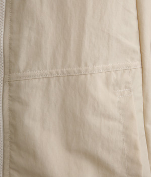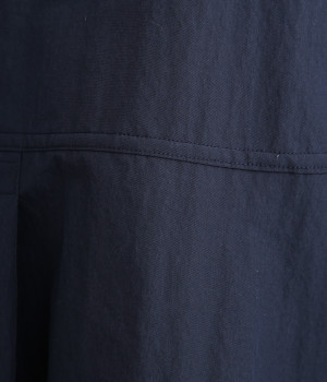 コットン×ナイロンを混紡した、パリッとしたハリが特徴のタイプライター生地。ほのかな光沢が、動きに合わせて美しい陰影を生み出します。撥水素材で、雨の日にも心強い味方に。