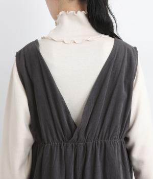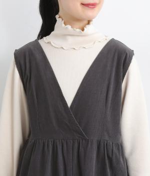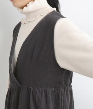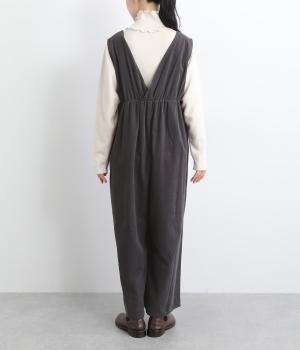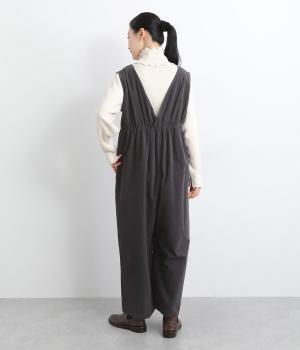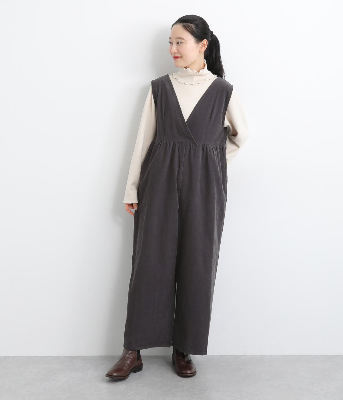 身頃をカシュクール風に重ねたサロペットです。ブラウスやニットなど、合わせるインナーによってさまざまな表情を楽しめます。ゆとりのあるリラクシーな着心地でデイリーに使いやすく、スタイリングの幅が広がる一着です。