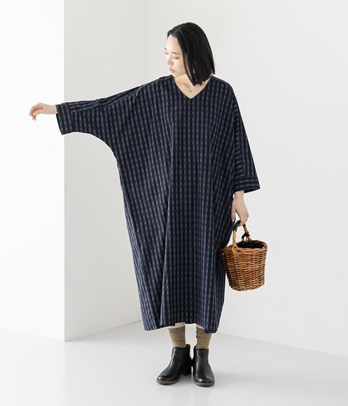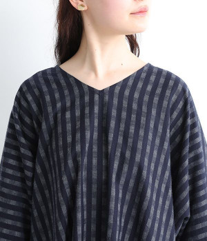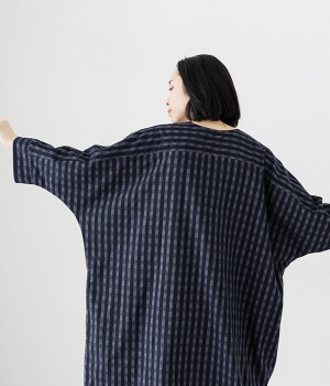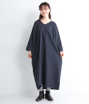 一部別注|ギンガムデニムワンピース(ネイビー-ONESIZE)