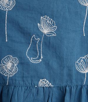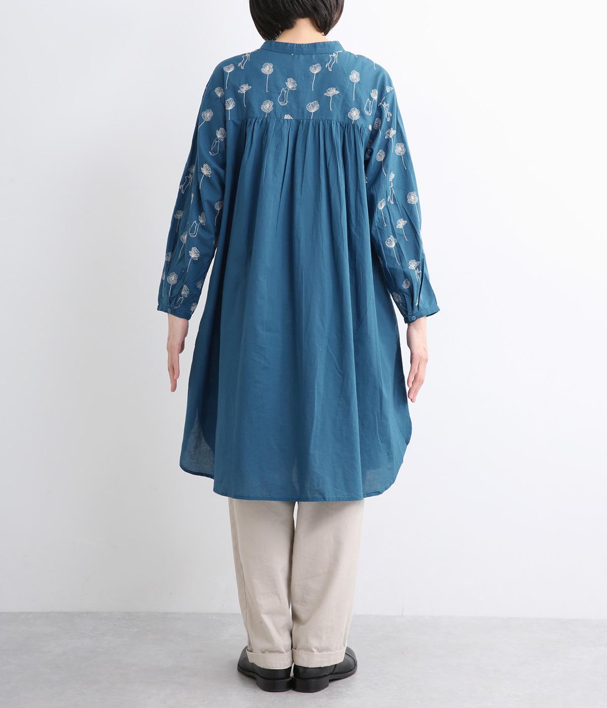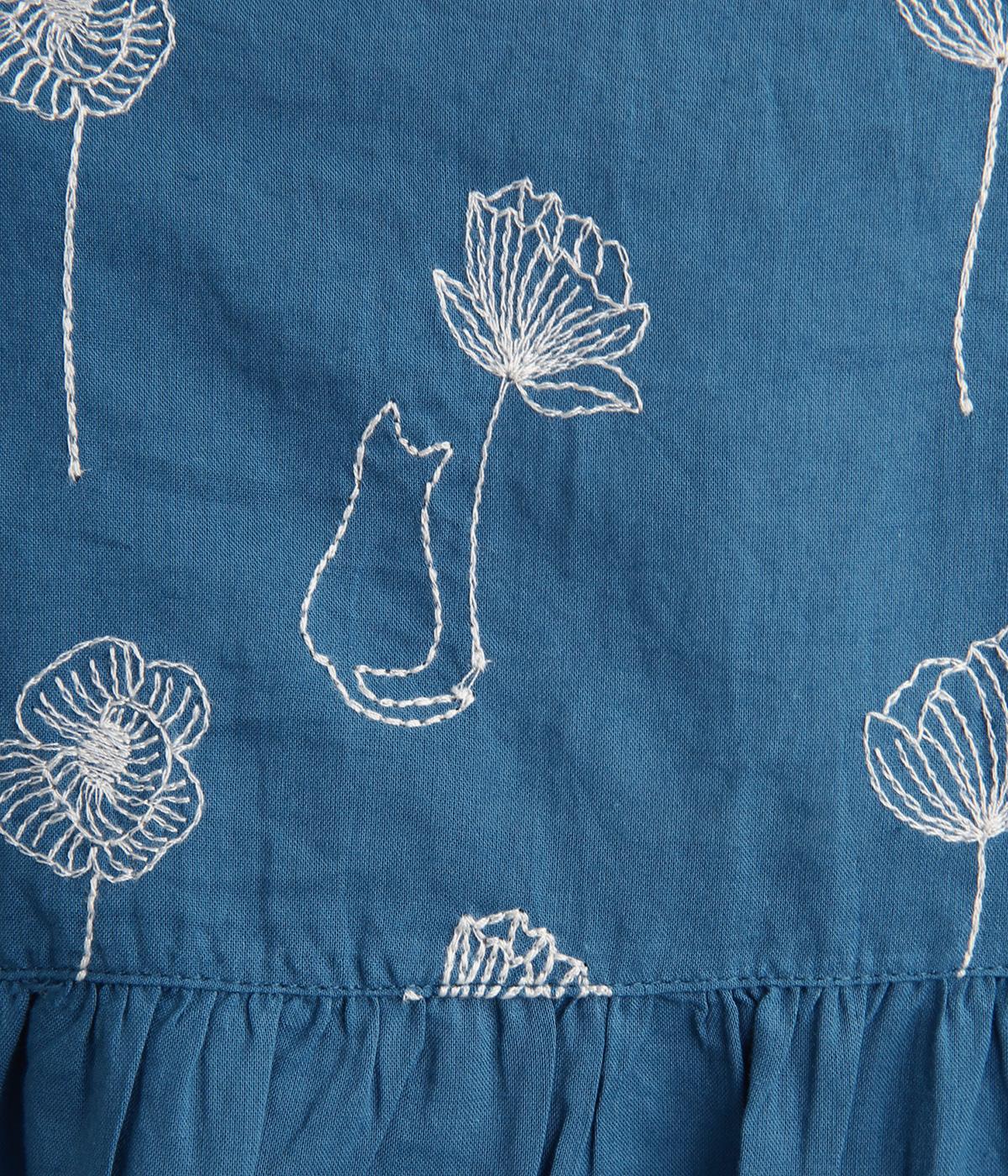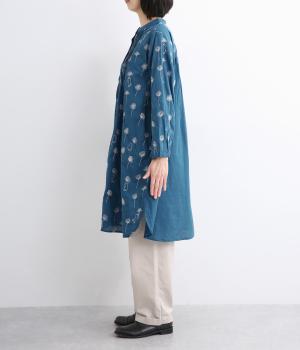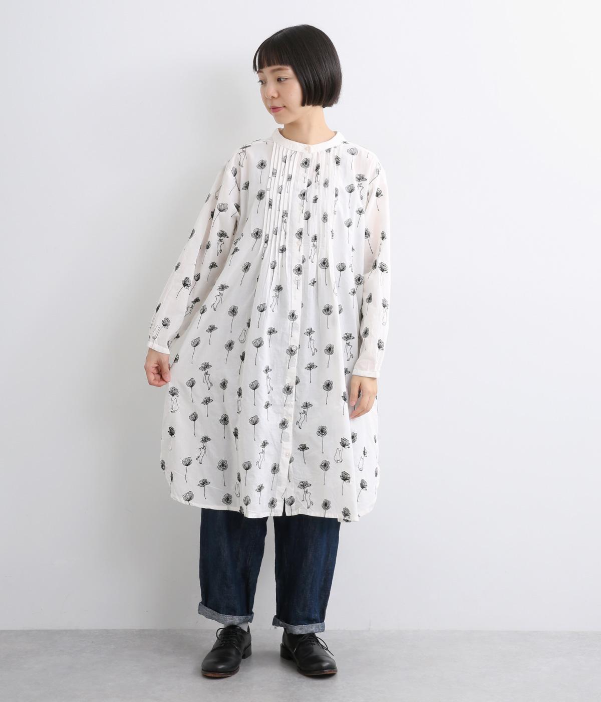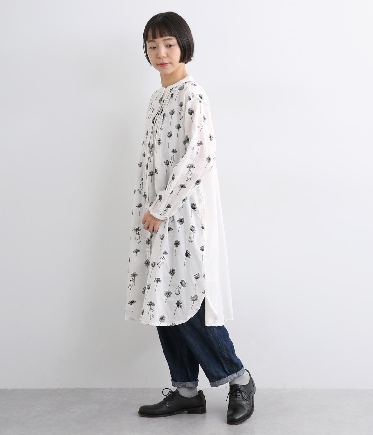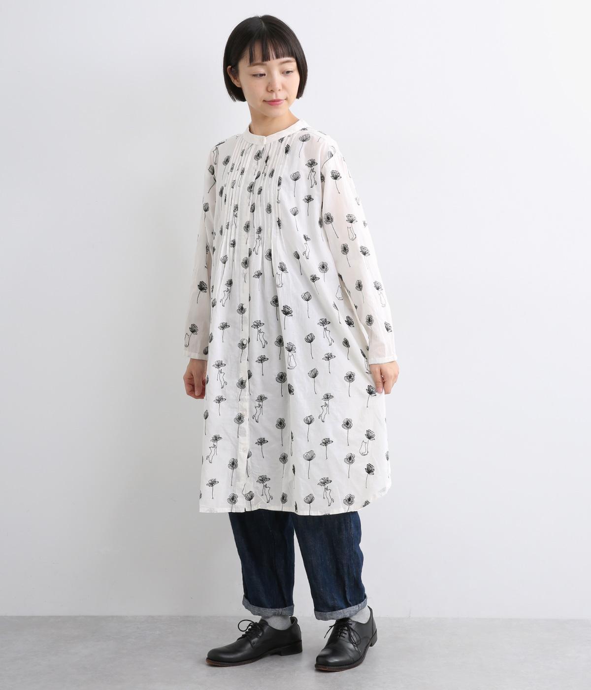 日常使いに最適な着こなしやすいチュニックに、お花と可愛らしい猫の刺しゅうをほどこしました。ボトムを選ばずレイヤードがたのしめる一枚で、うれしいサイドポケットつき。前あきで羽織り使いもおすすめ。