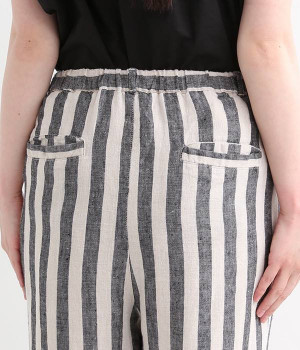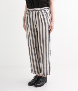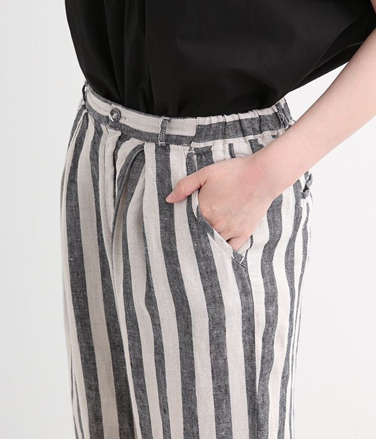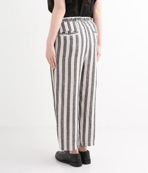 先染め特有の深い色合いが特徴的なリネンパンツです。ウエスト下にはタックを施すことでボリュームを抑え、立体感のあるつくりに仕上げました。足首周りがすっきりと見えるテーパードシルエットを採用し、ワンピースやチュニックなどのアンダーパンツとしてもおすすめな一枚。ほどよいゆとりを持った着心地で、大人のデイリースタイルにぴったりです。