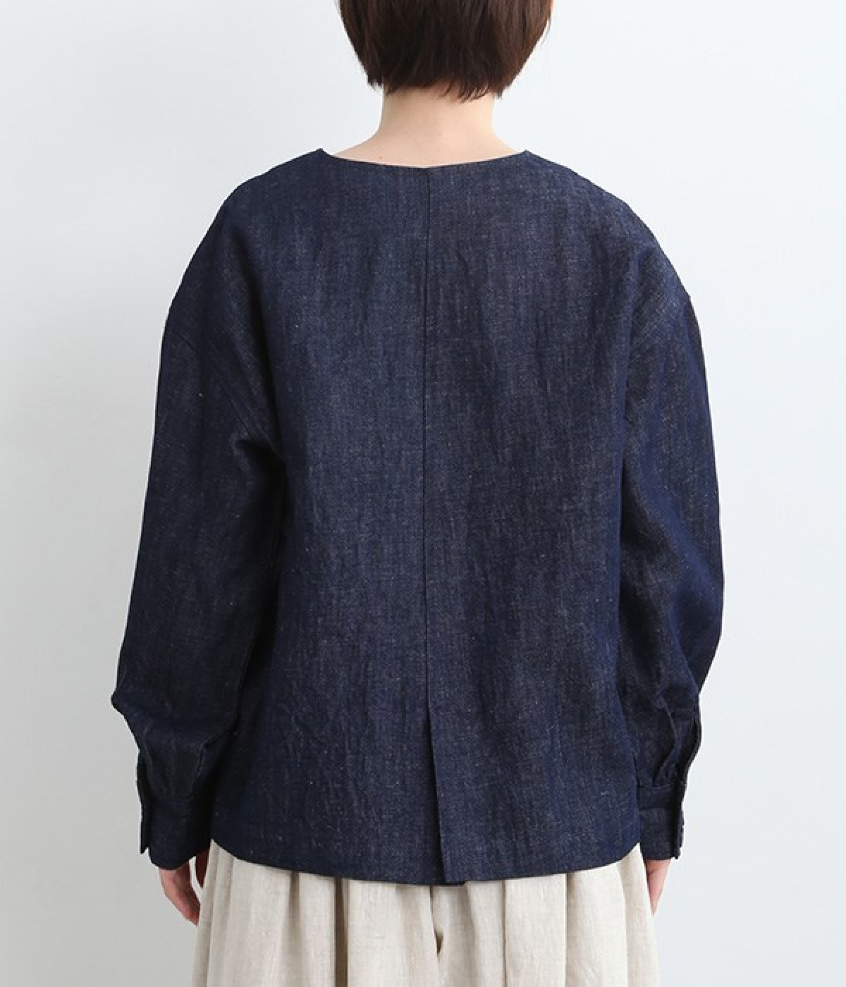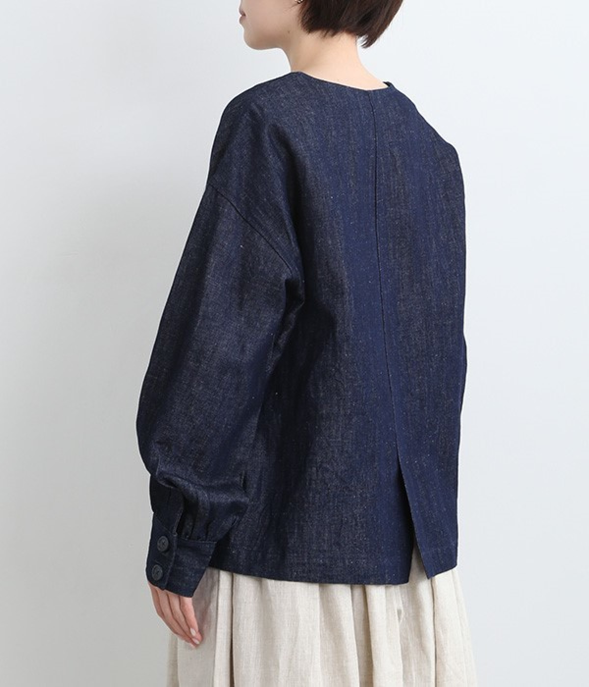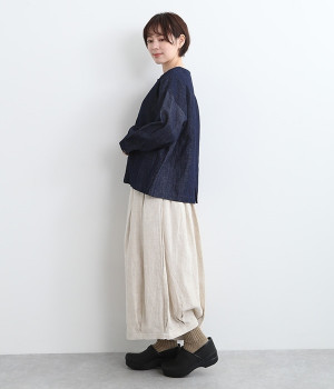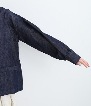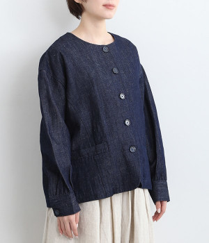 生地洗いをほどこすことで体になじむ風合いに仕上げたリネンコットンブルゾンです。袖口部分のギャザー使いにより、袖にふんわりとボリュームを持たせてかわいらしいシルエットに。首元をすっきり見せたいときに便利なノーカラーは、襟高のアイテムとも好相性なので重ね着も楽しくなりそう。着丈が長すぎない設定のため、ボトムの型を問わずにスタイリングが組めます。