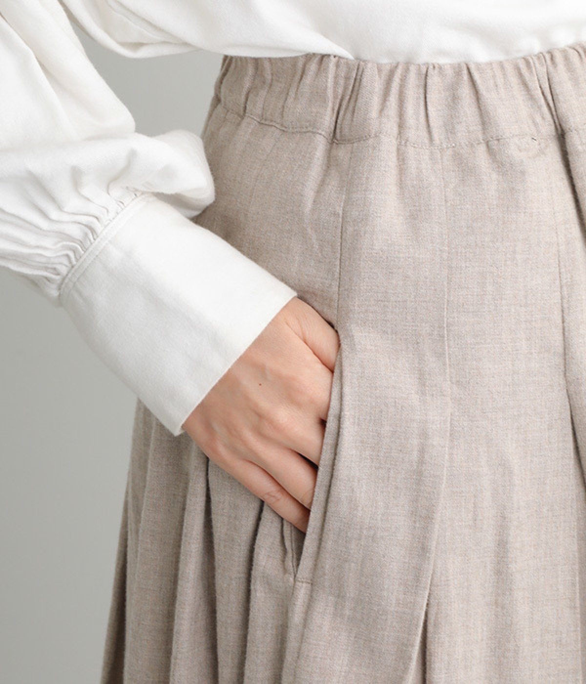 やわらかなシルエットをつくりだす、ウエスト下のタック使い