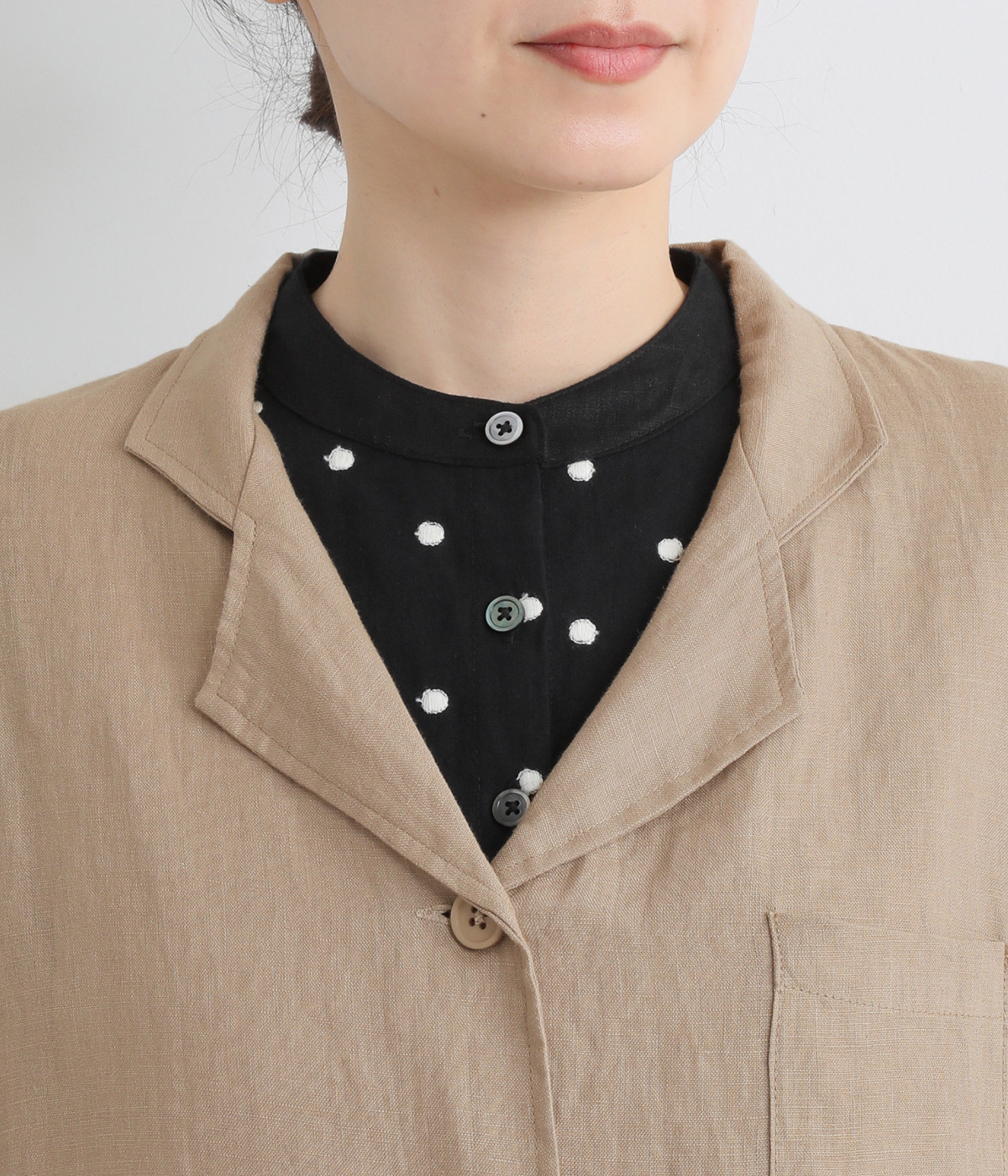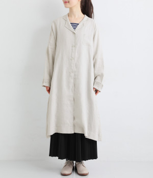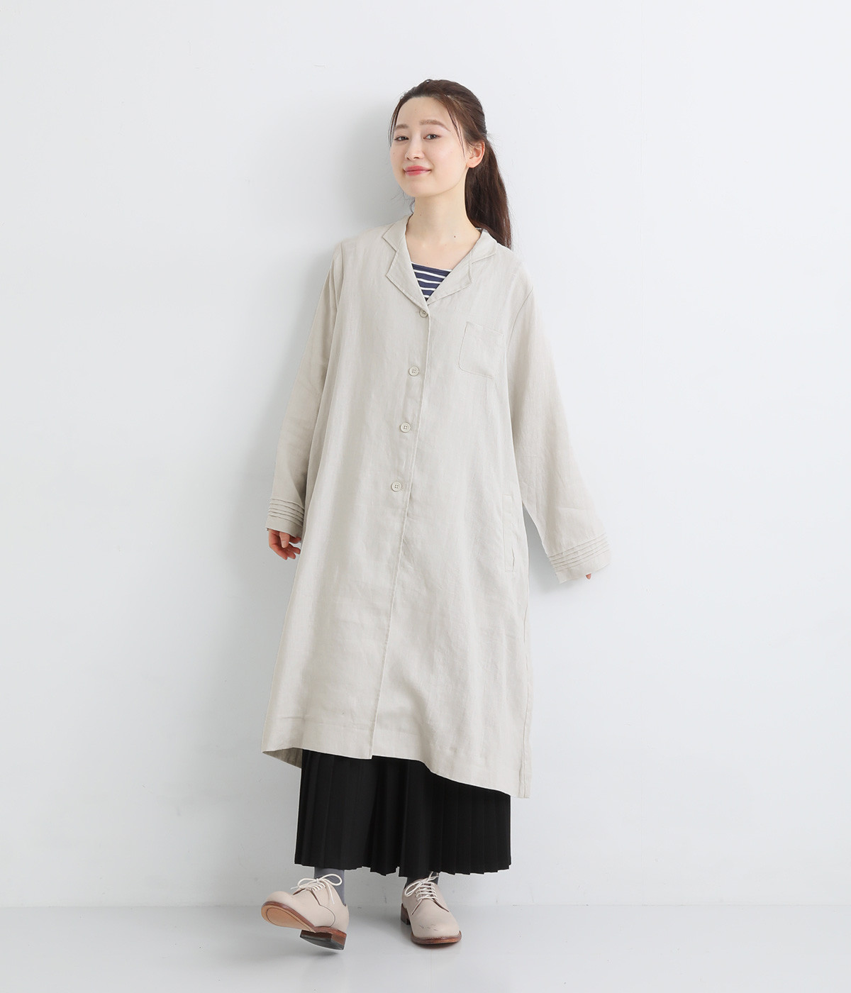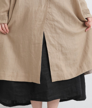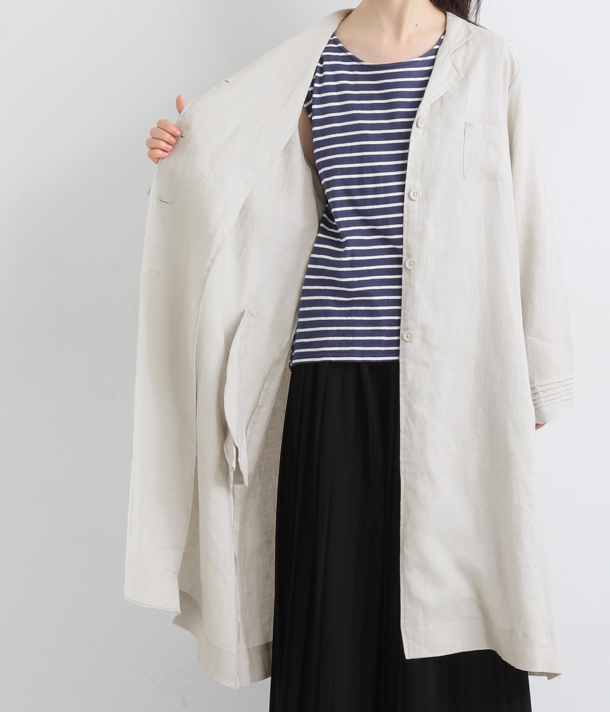 洗いざらしのナチュラルな風合いが楽しめるリネンを使用しています。くたっとやわらかな肌触りで、ストレスフリーの着心地を実現。通気性・吸湿性があり、季節の変わり目にぴったりです。