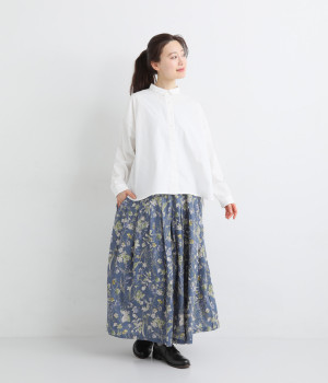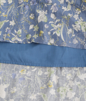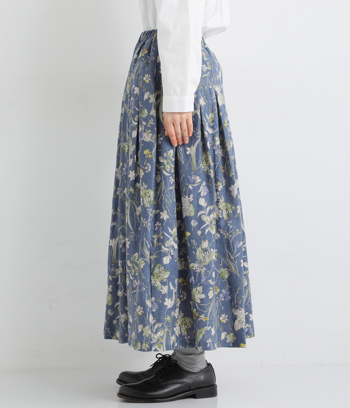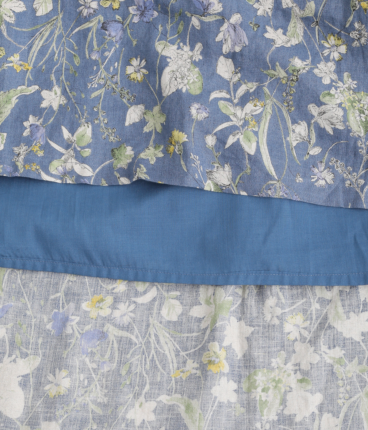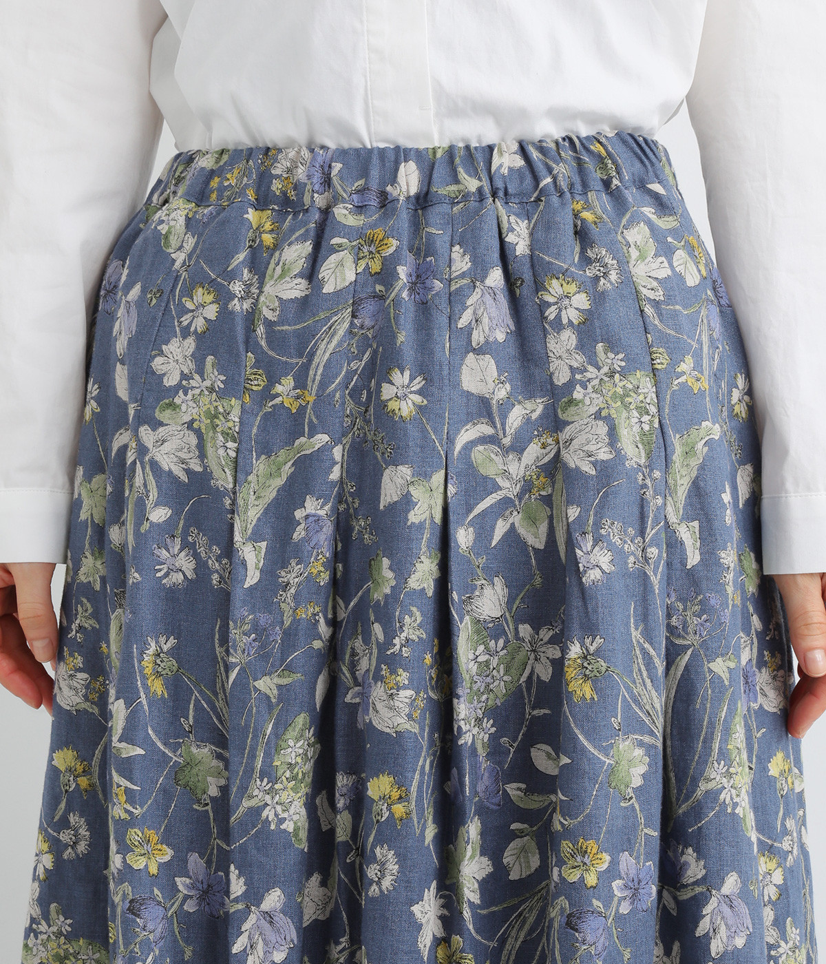 やわらかなリネンに、やさしい表情の水彩画プリントをあしらったテキスタイル。軽やかな風合いで、ロングシーズン活躍します。裏地付きで透け感が気にならないのもうれしいポイント。