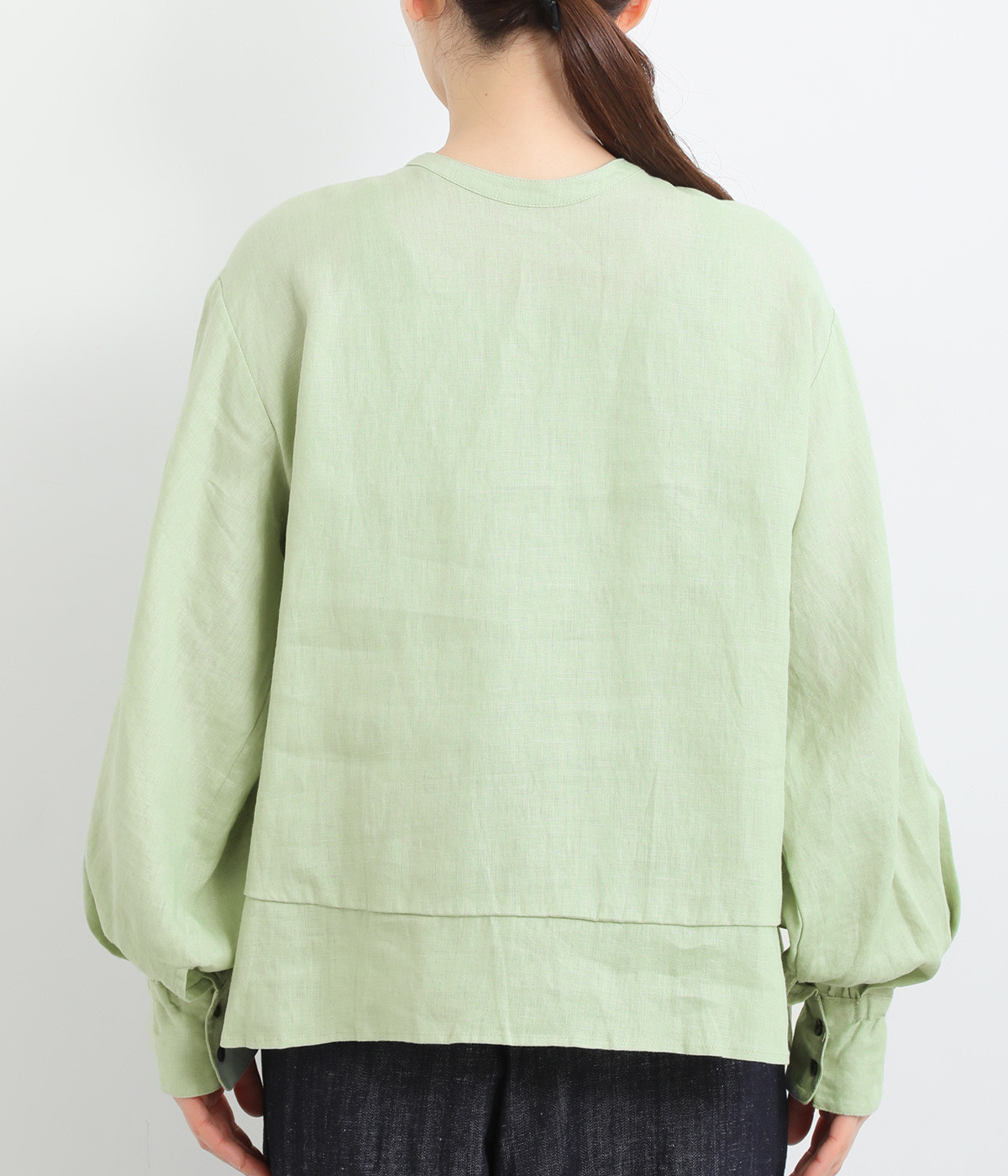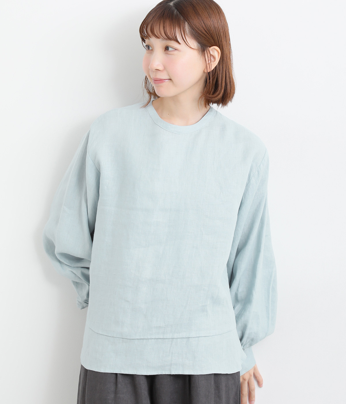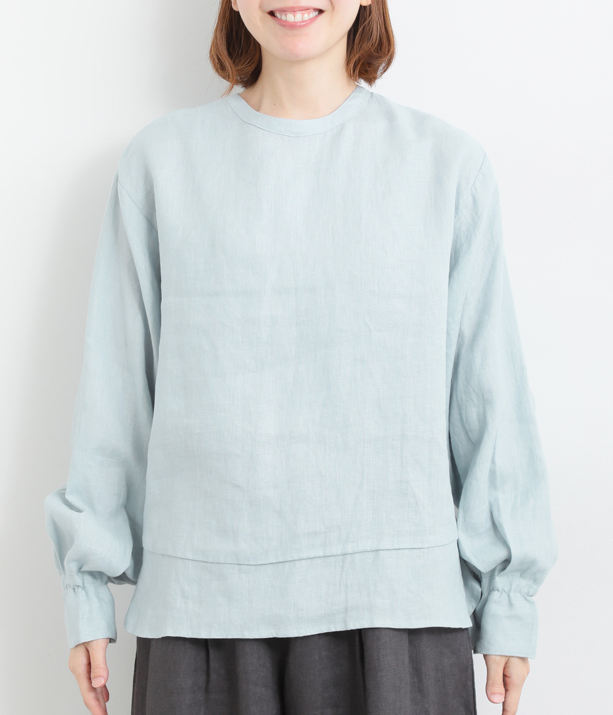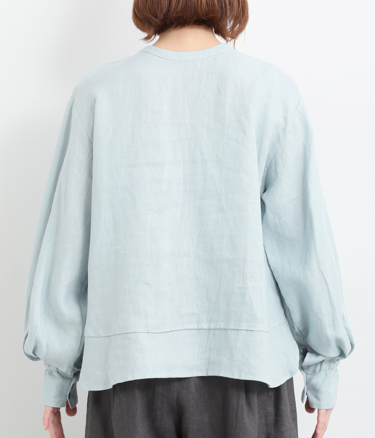 袖口ゴムシャーリング加工でふわりとボリューム感を