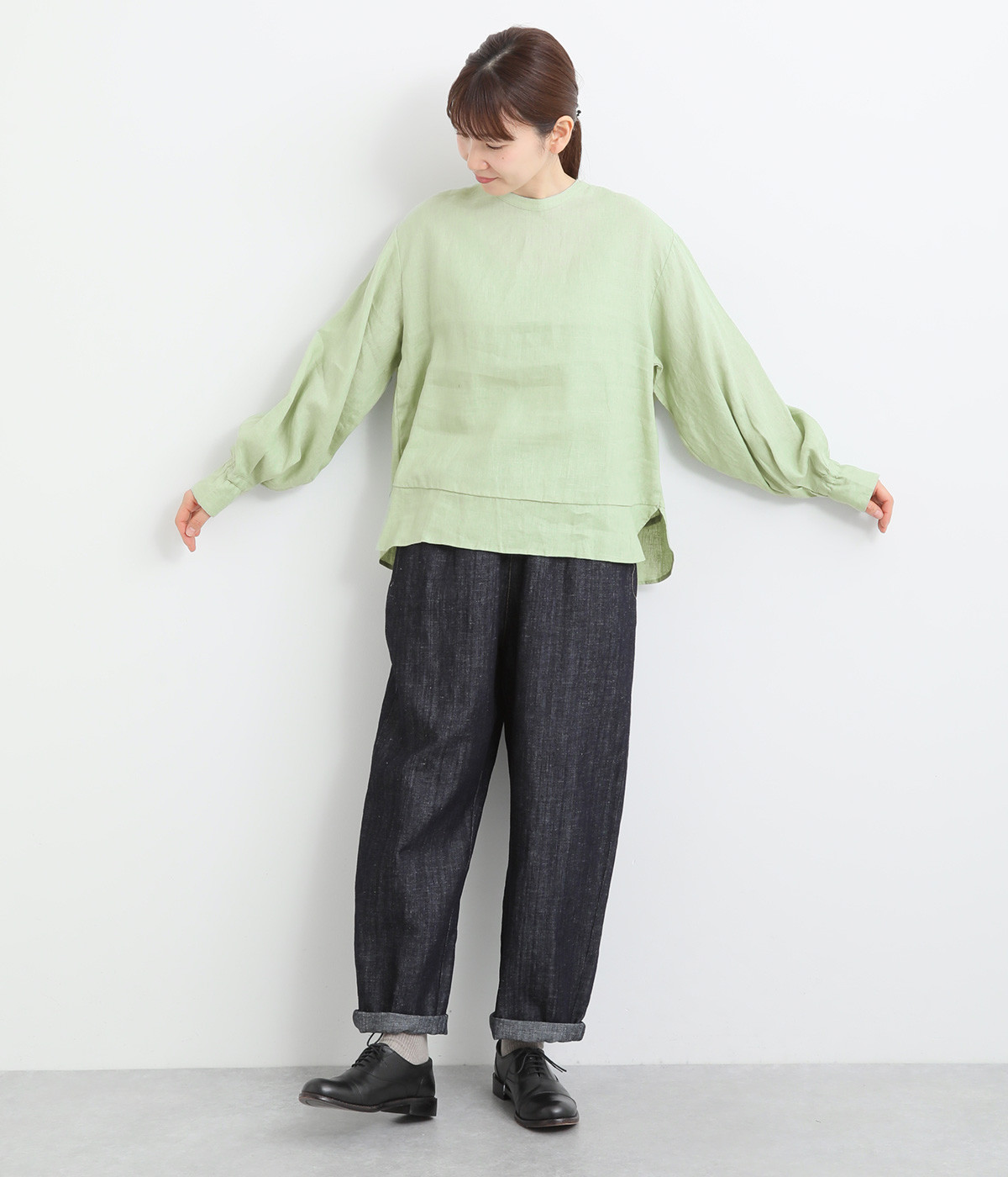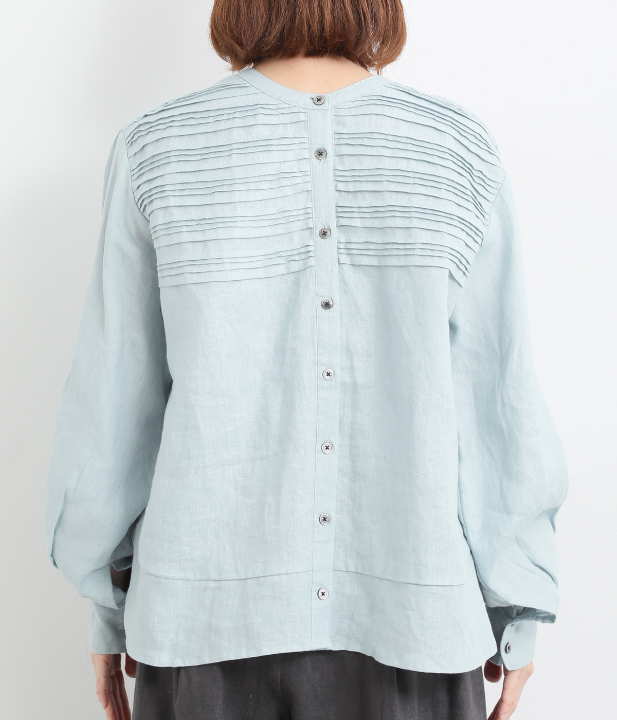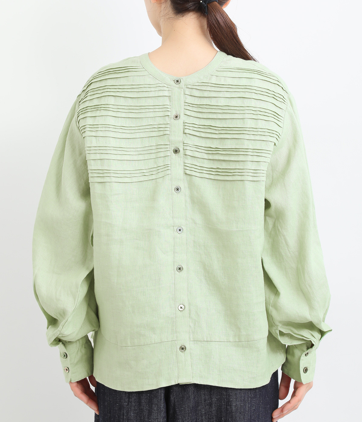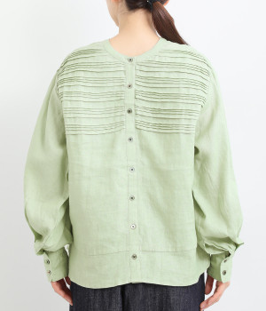 袖口ゴムシャーリング加工でふわりとボリューム感を