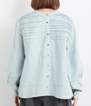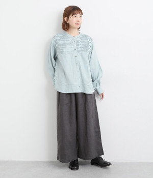胸元のボーダーピンタックが目を惹く一枚
