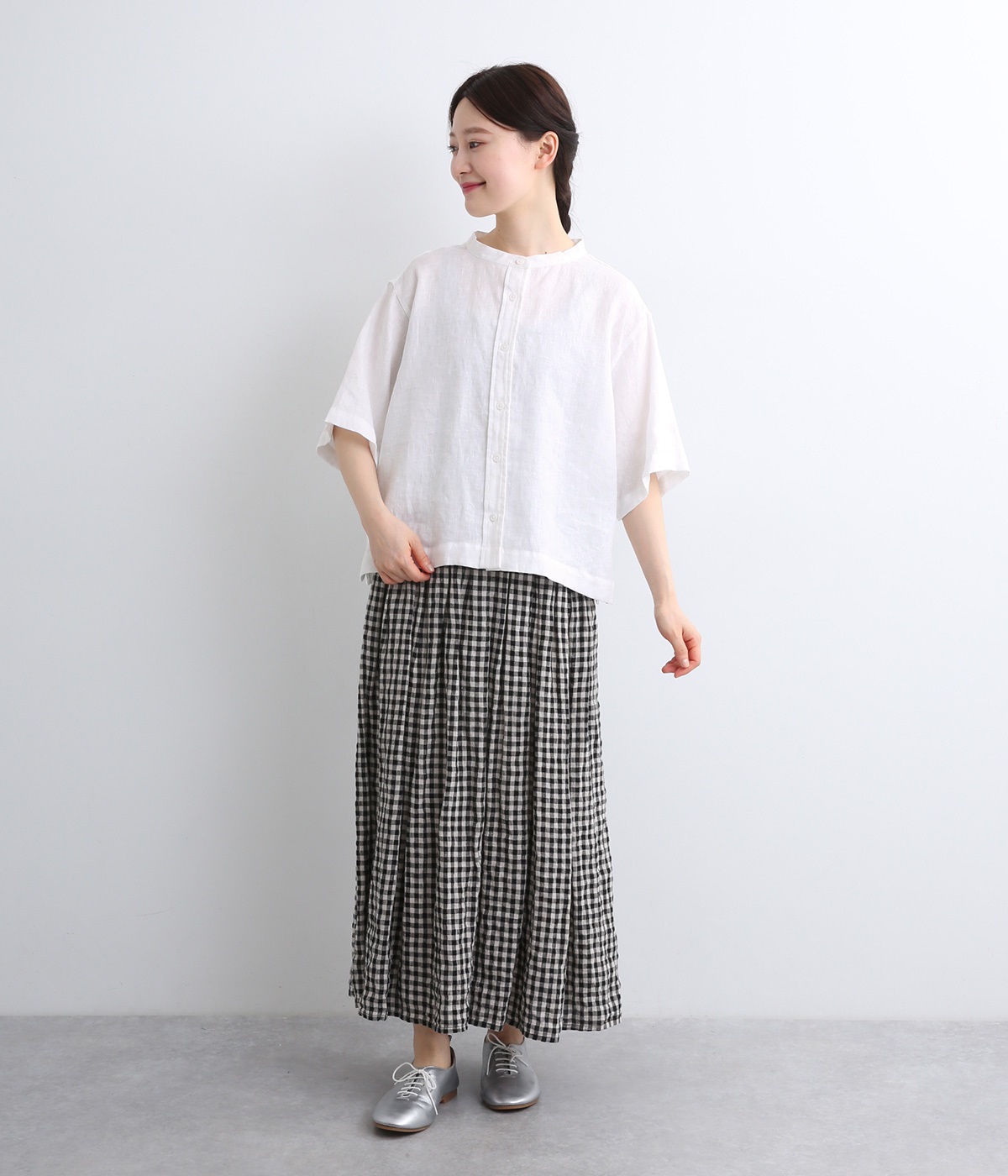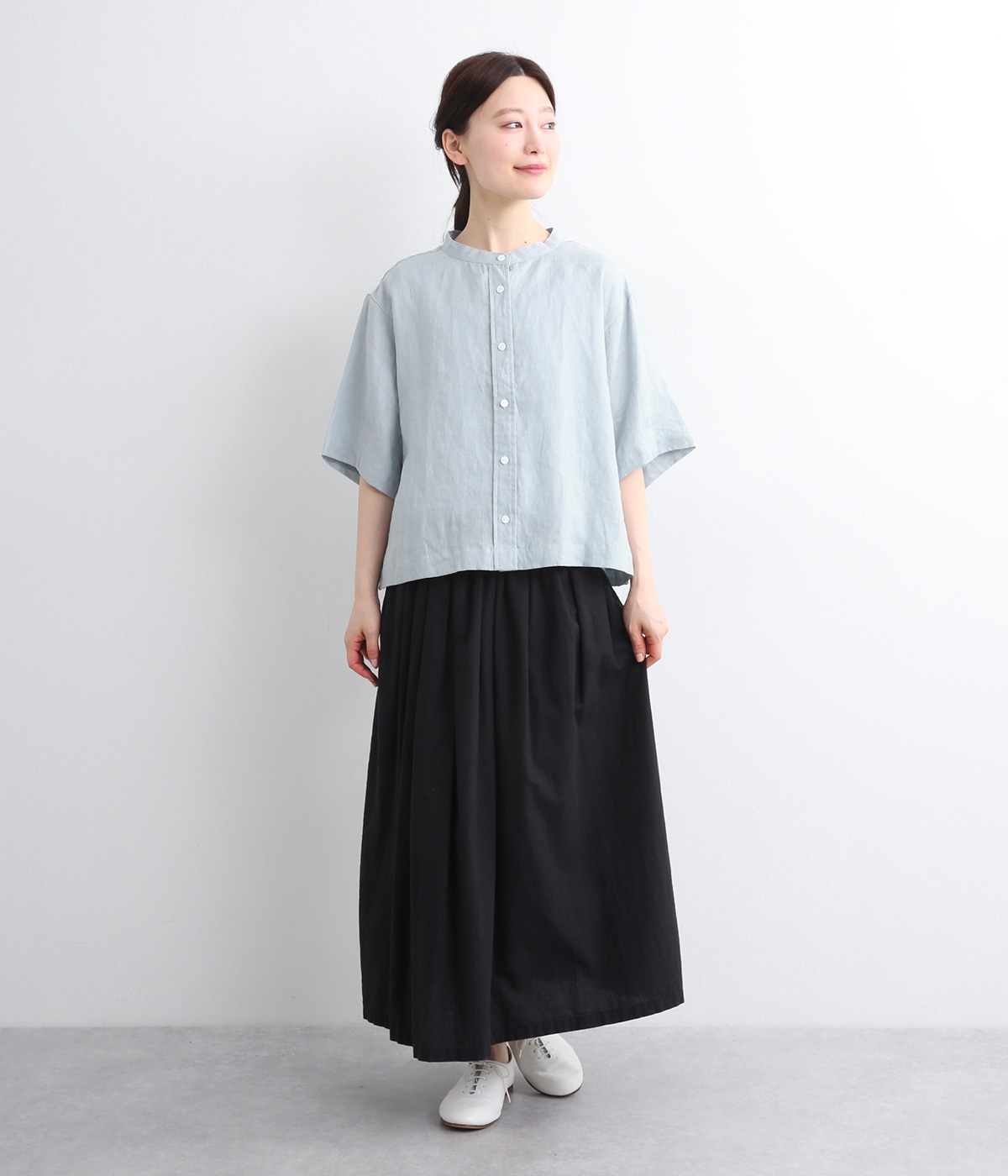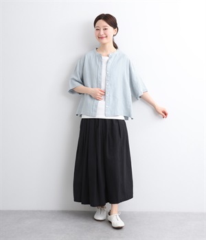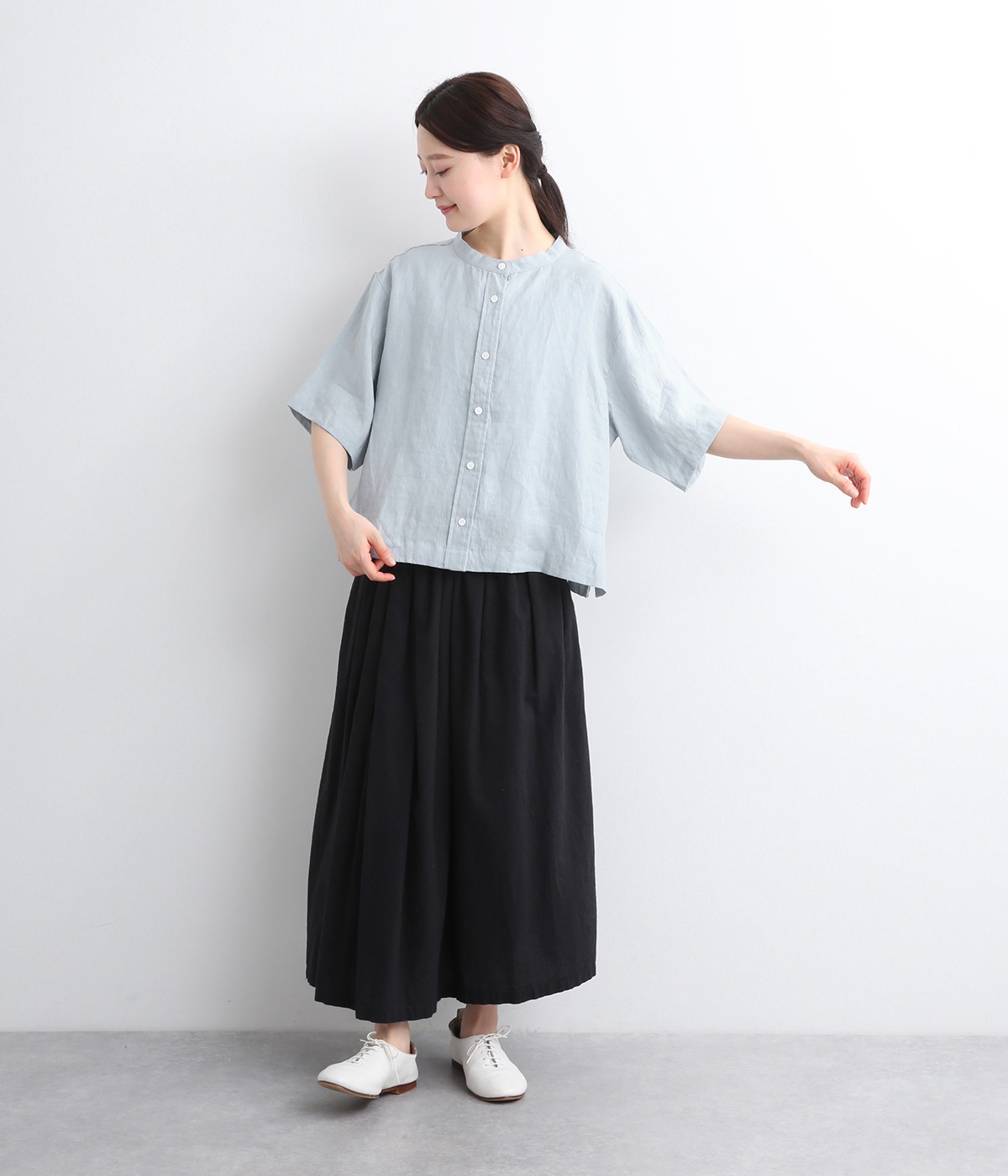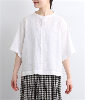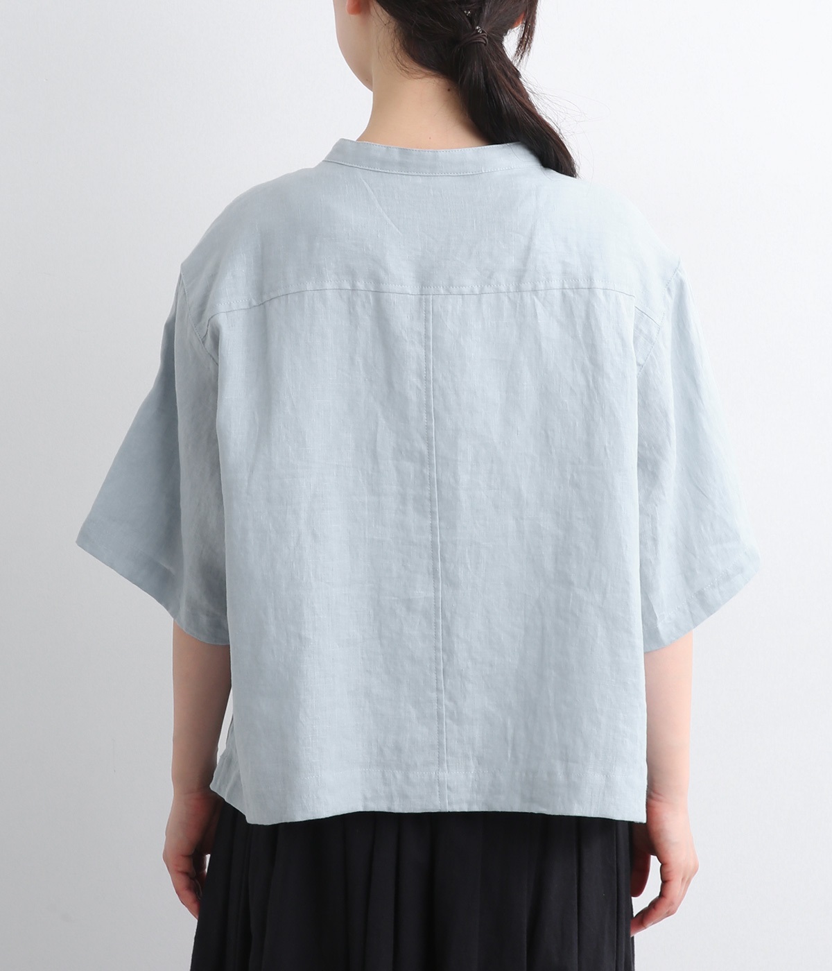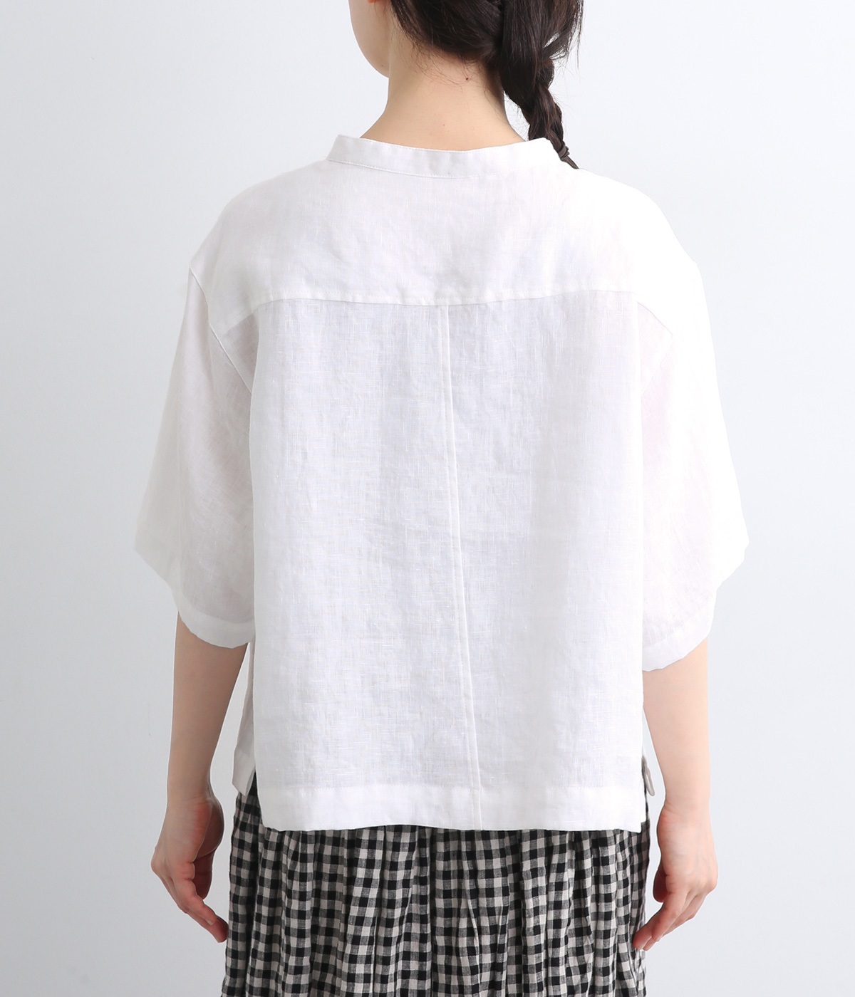 風が通り抜けるゆったりとしたつくりながらも、ラフになりすぎないほどよいフィット感に仕上げた半袖ブラウス。着丈はコンパクトにまとめ、さまざまなボトムと好相性に。さっと羽織るだけで、力の抜けた大人のリラックススタイルが完成します。
