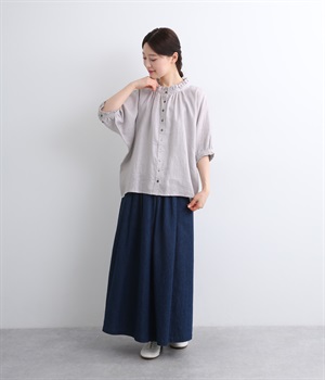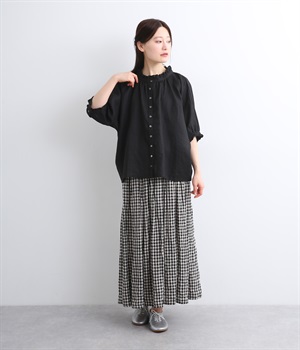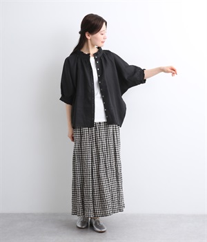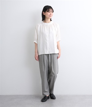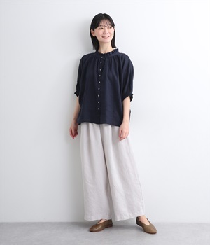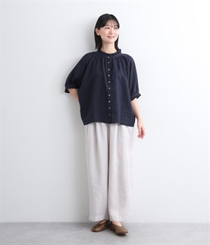 シャリ感となめらかさを兼ね備えたリネン生地を使用。汗ばむ季節でもべたつきにくく、さらっと快適な着心地を叶えます。