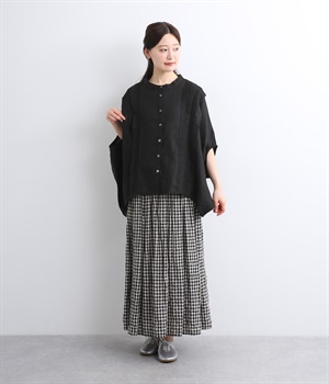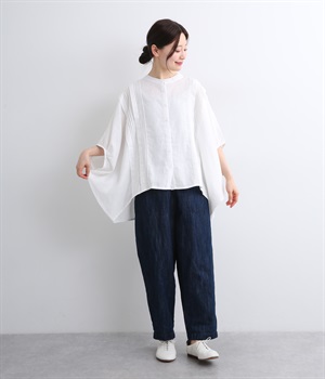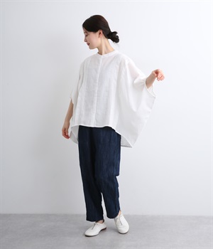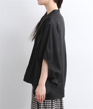 贅沢なワイドシルエットが魅力のブラウス。風が通り抜けるようなたっぷりとしたゆとりが、リラックス感を漂わせます。胸元には縦ラインを強調するピンタックをあしらい、表情に奥行きをプラス。コーディネートの主役になる存在感のある一枚です。