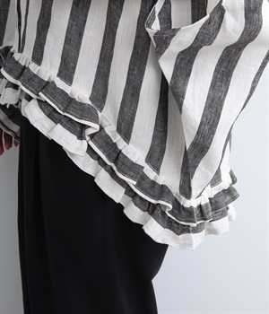 たっぷりと生地を使ったワイドシルエットが存在感を放つブラウス。動くたびにサイドがふわりと広がり、風をはらむようなやわらかな表情に。抜け感を生む前後差ヘムには二段フリルをあしらい、甘さが薫る大人のこなれた着こなしを叶えます。