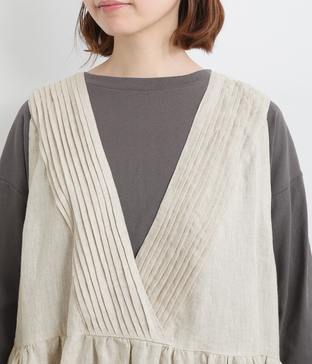 Vネックはピンタックを入れて印象的に